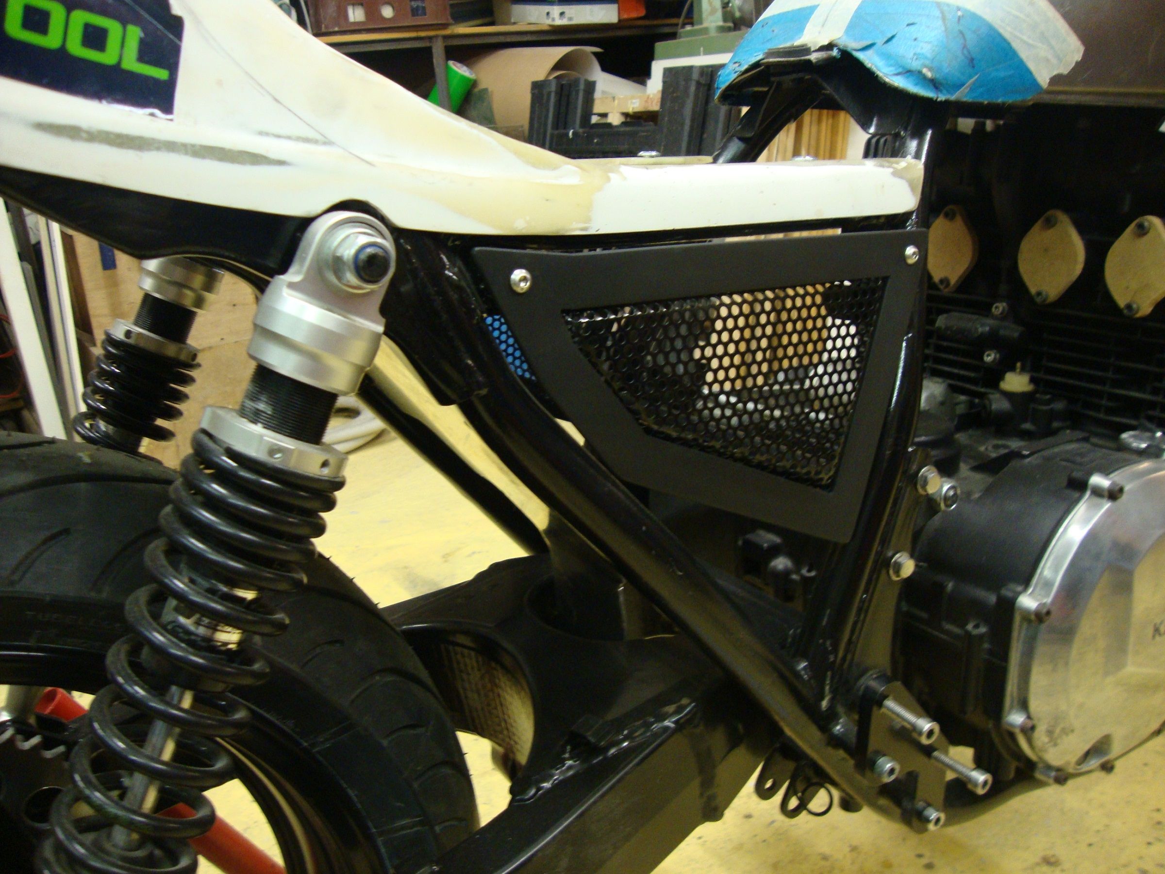 The 'Ducktail'. Yes,Im well chuffed with that. It was a fiberglass Z1 repro from ebay..It was too narrow for the frame so I had to slice it down the middle and re-fiberglass it. The whole process is earlier in the thread somewhere.(my first time fiberglassing!).I still have to sand it and fill some small holes before painting.Thatll come later.