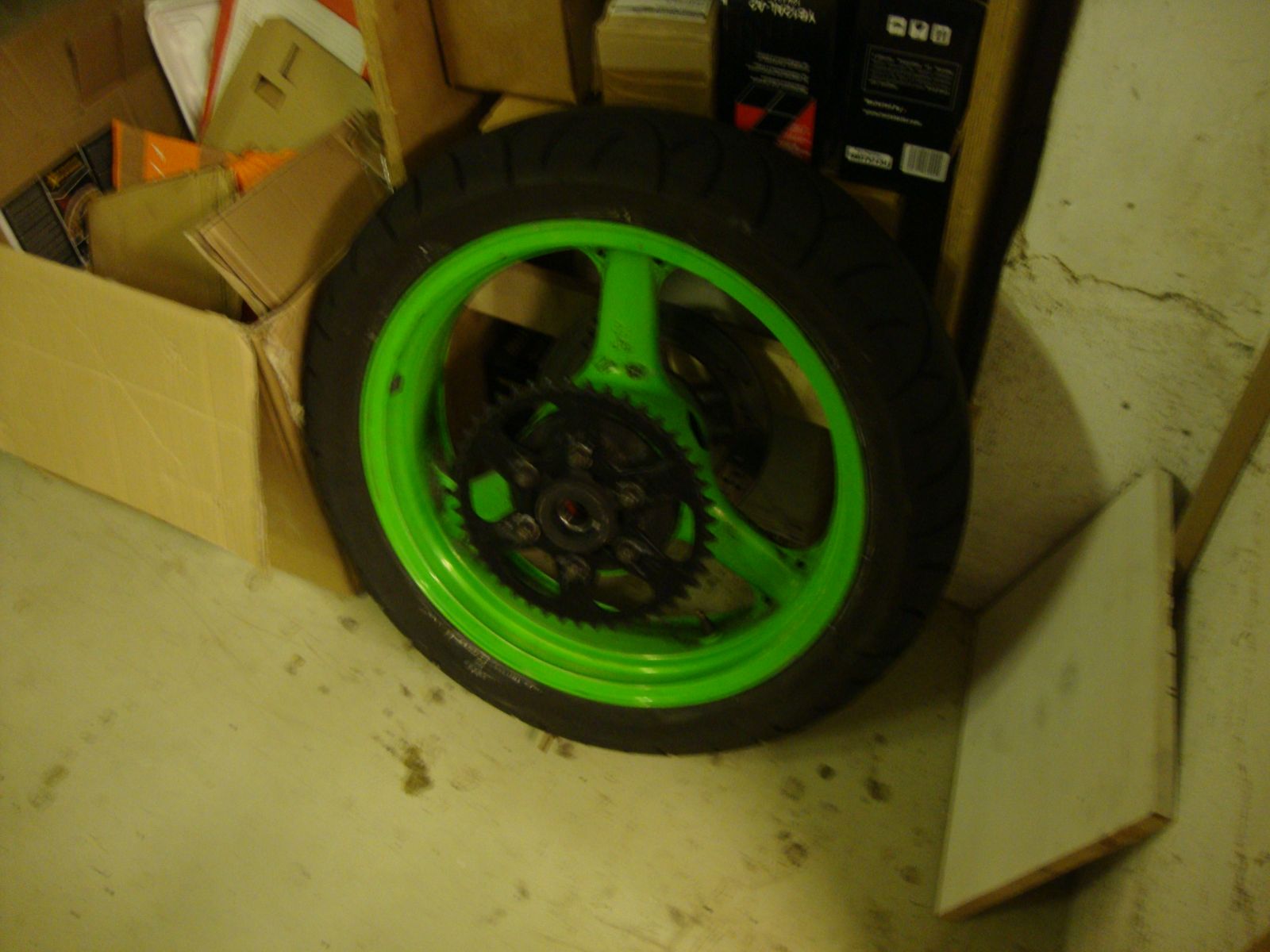 I got the ZXR400 wheel today and ran straight over to my very helpful local bike shop for an old 160 tyre.