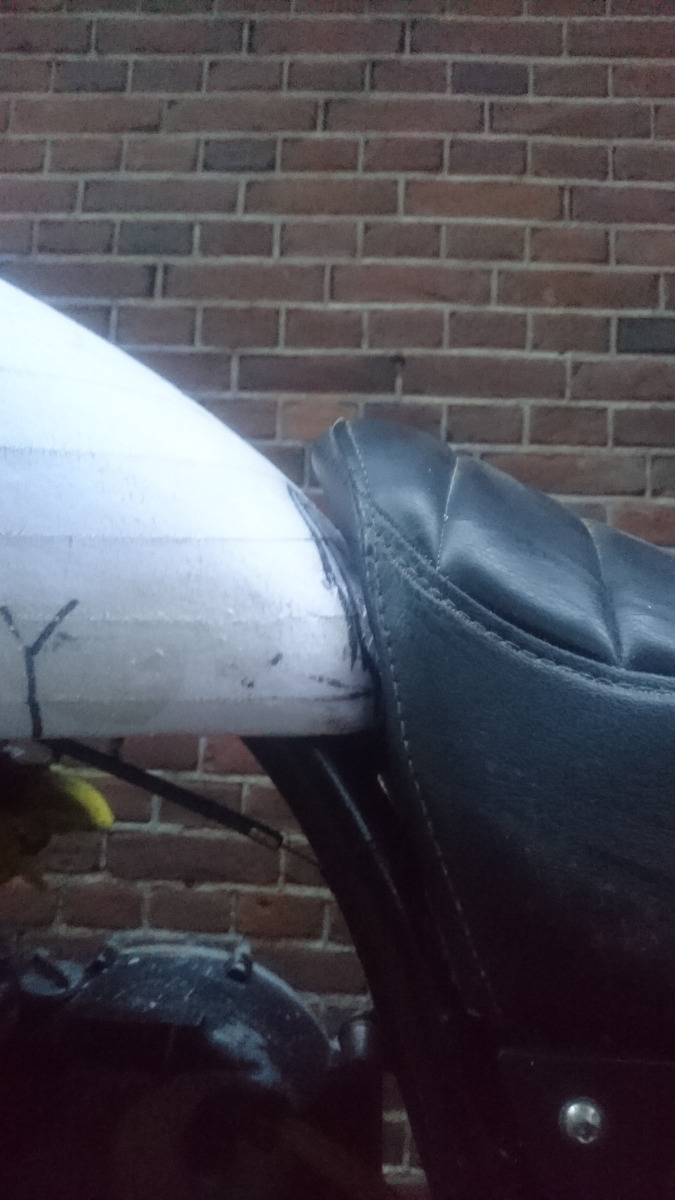 The front needs more work as the forks are still banging into it on full lock. I marked up where they're hitting so I know where to shave a bit more off. I don't want to lose too much of the original shape,if I can help it;