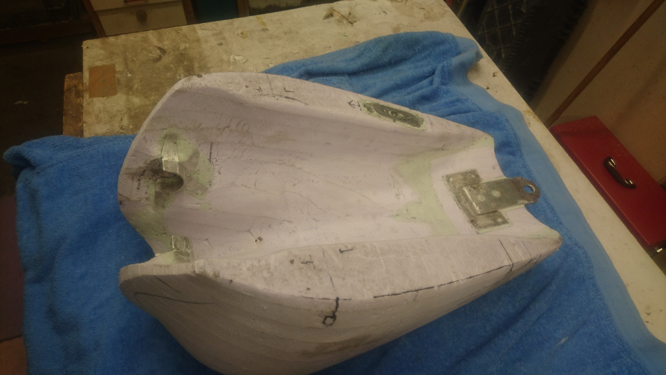 One of the changes I want to make, I mentioned earlier, is that I want to have the aircraft style fuel cap set into the tank and sitting flush. I've raised a section of the top of the tank to give a level area to mount the cap;