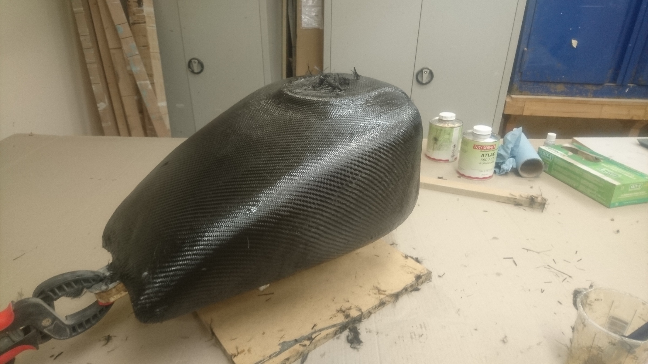 Tomorrow,I'll get the rest of the foam out. Then it a lot of sanding and more laminating. Still got to drill out the bolt holes for the filler cap and the holes for the fuel tap then I can close the hatch. (I might have to order some more carbon as well!!)