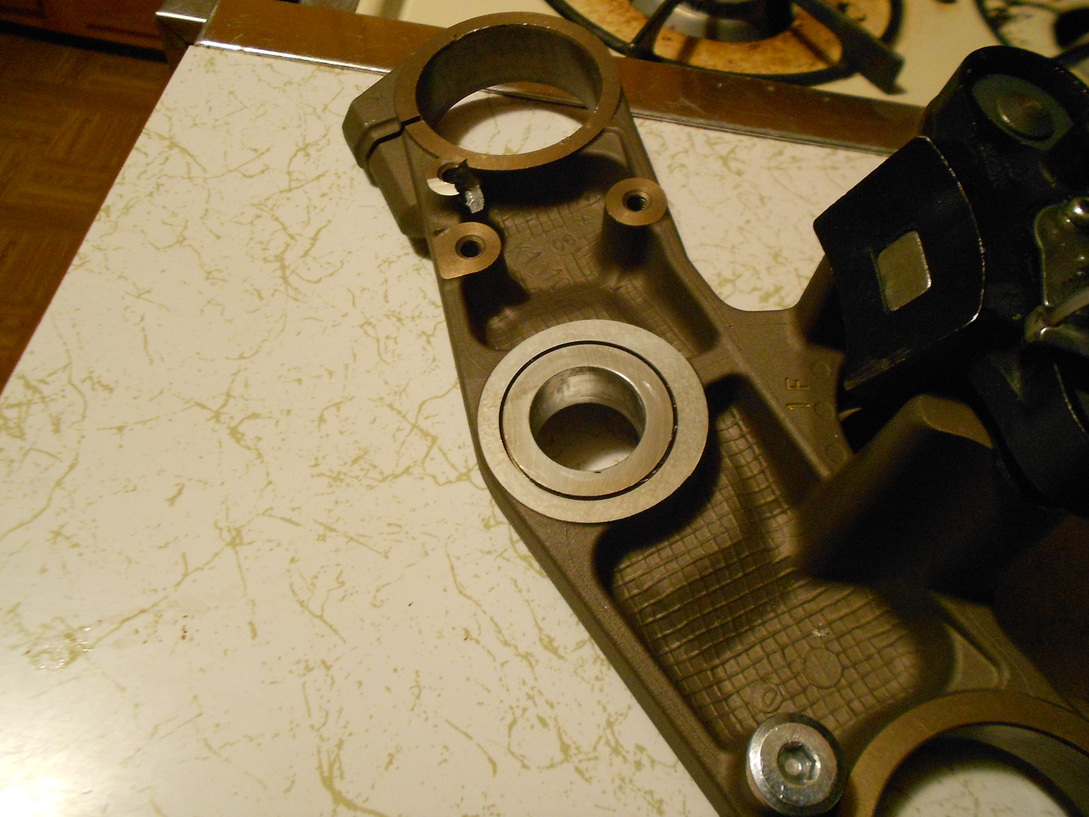 I am just hoping that I do not have to machine the little ridge that is concentric with the new stem to allow enough upward movement to make it work. It is ridge that the bearing will sit on that is 2 or 3 mm high at the base of the stem. My guess is that it located the inner diameter of the ZX7 bearing. Has anyone machined this off? or run it as-is.