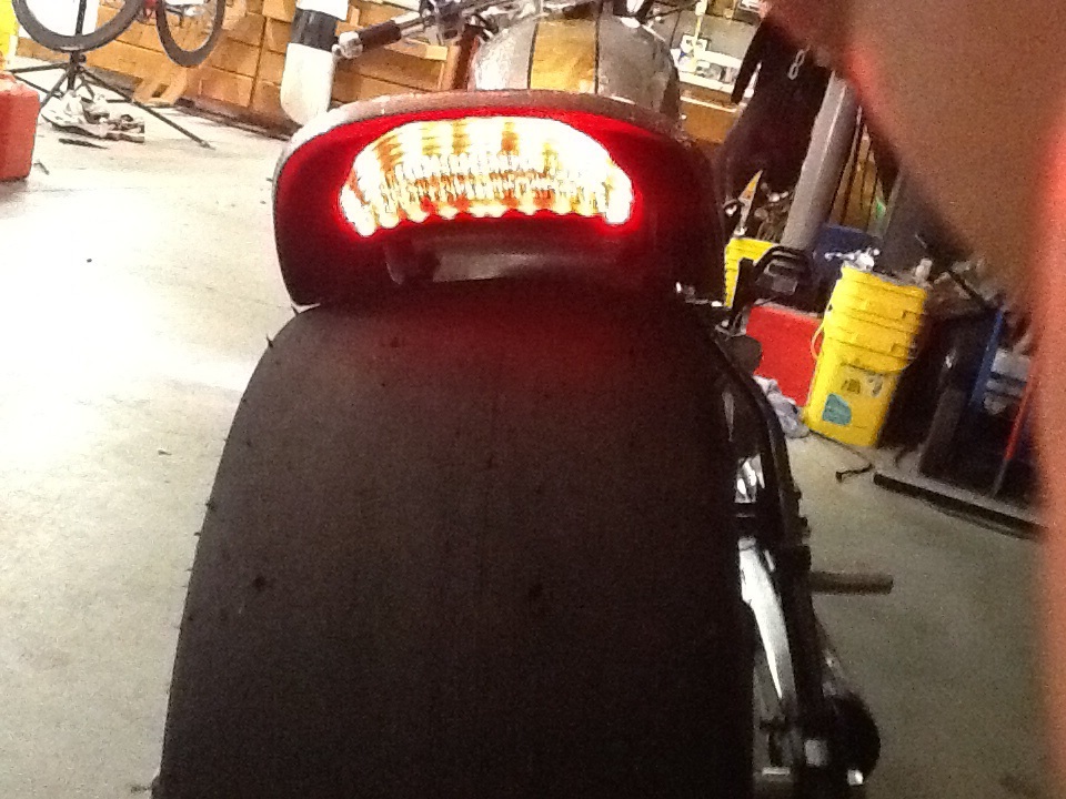 77 ltd 1000 small cams 10.25 to pistons 29 smooth bores 10.50 dot slick kosaman frt. and rear wheel 3 inch offset sprocket sidwinder car tail light bass boat flake paint gold leaf strip (going after 70s look) the bike rides like crap corners like a truck but man is it fun to ride here it is