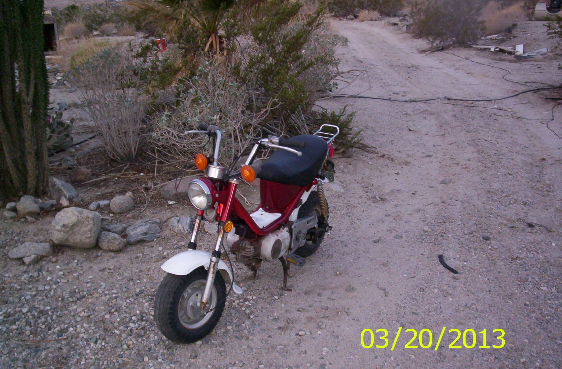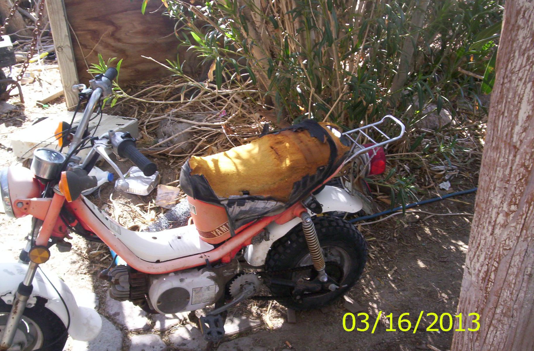 I was fixing up a Yamaha Chappy for my granddaughter. I didn't have much money and needed to recover the seat. Riding down Dillon road I spotted a couch in a field.