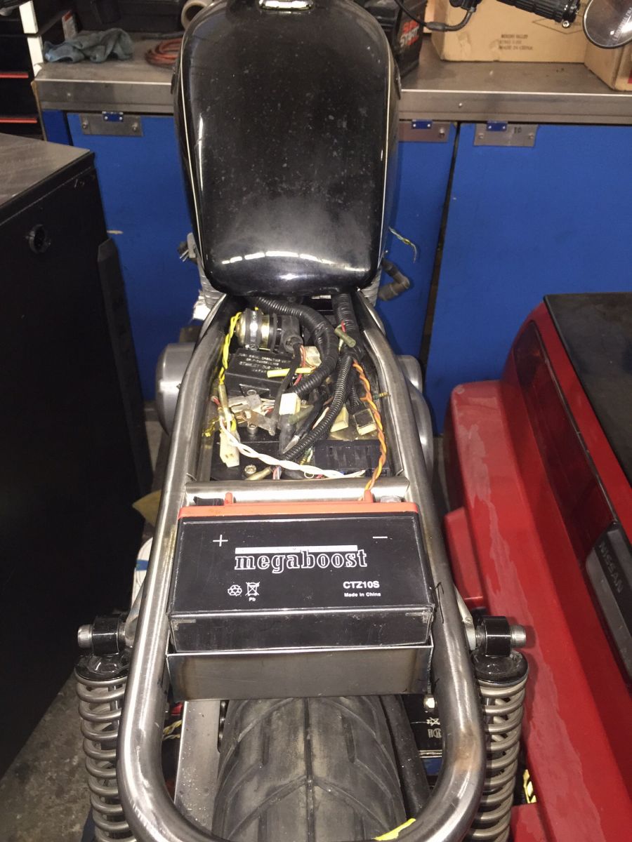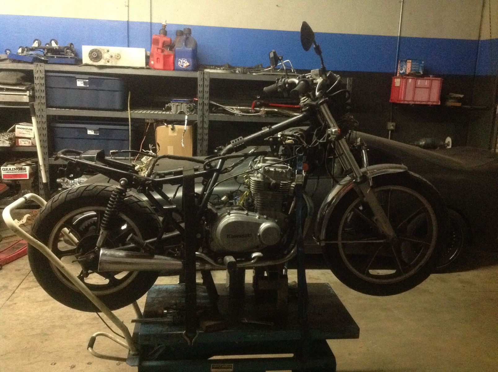 So there it is so far. I'm still far from being finished. Got a bunch of car stuff I need to build and a few rollcages to finish on customers cars. Im waiting for the kz400 triple and forks I ordered but according to the "usps tracking#" it's at a usps dubbed the "Black Hole" sooo, hopefully I'll get the rear wire on and suspension buttoned up this week. Feel free to make any comments or concerns, hell even suggestions? Just keep in mind that it's far from seeing a road. There's still a bunch of fab work I need/plan to do. Frame still needs gussets, need to mount rearsets, clip ons, shave the top of the triple, make a new indicator dash, finish up the wires(shortened the harness like 2ft almost!?) a long list of "oh boy" ive got. Thanks for your time! I'll update with new info and post pics when there's more progress, hopefully I didn't screw up posting these pics now?