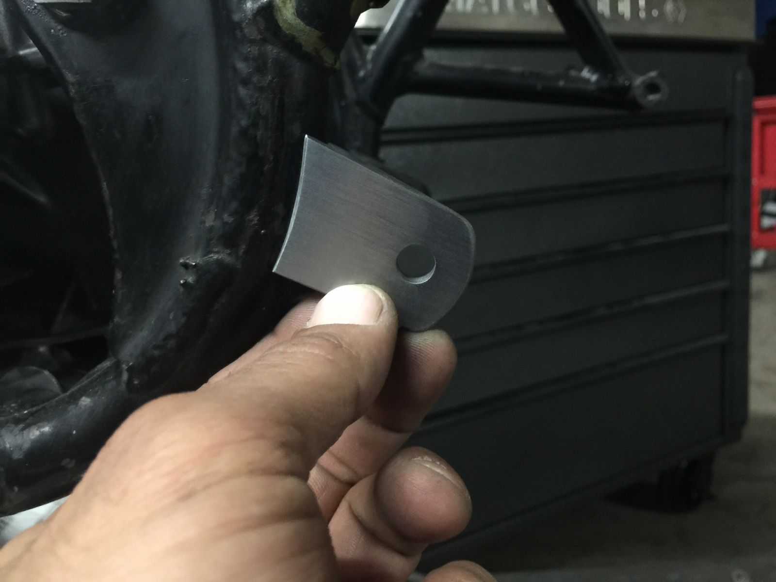 First tab fabbed up to weld in it's new home to support my left footness.