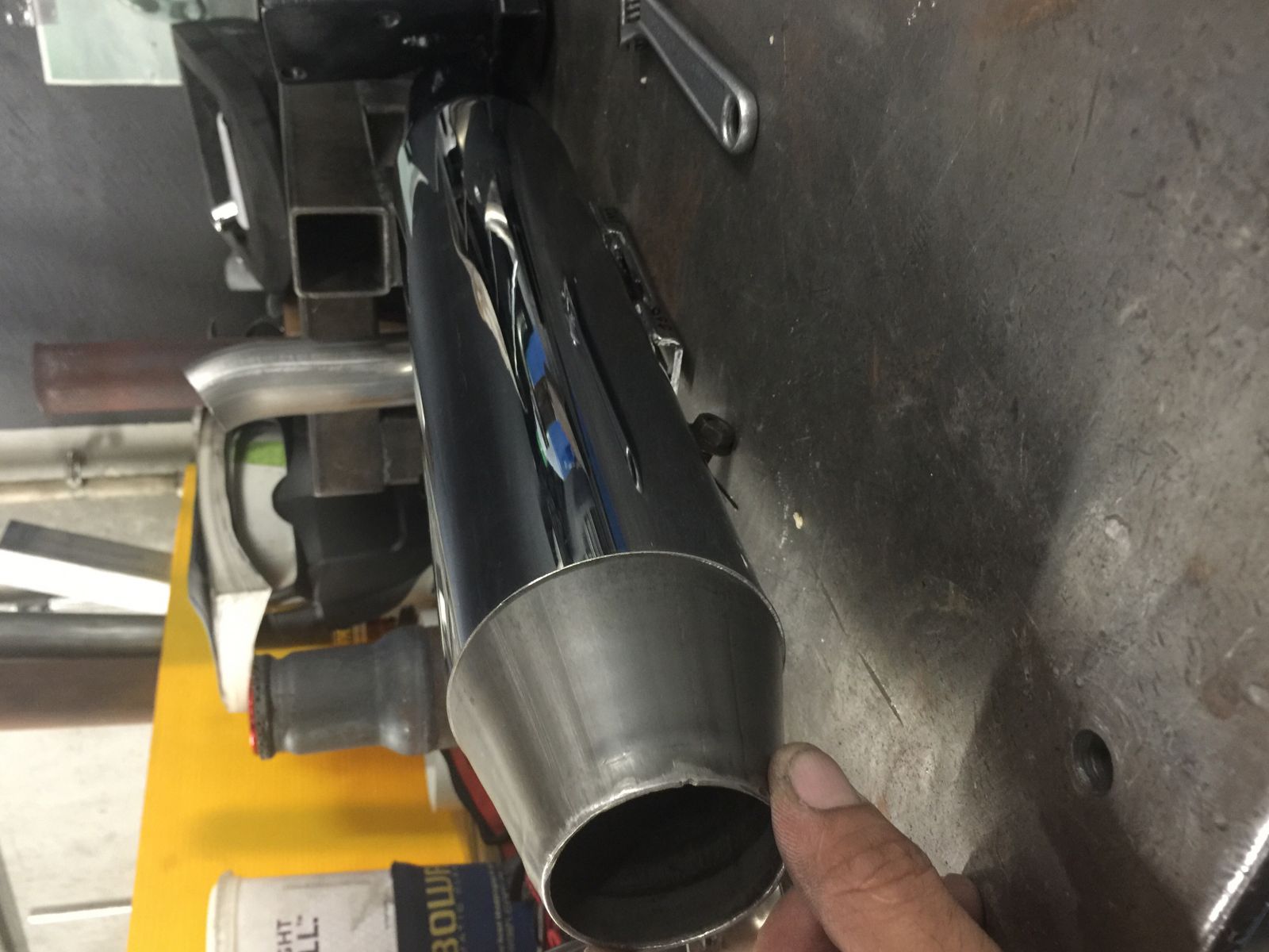 These aren't the best pics for examples, I'll try to post them tomorrow. It'll be a reverse cone with the smaller end welded to the center of that tube in the first pic, so the 4 tabs you see there now won't be visible.
