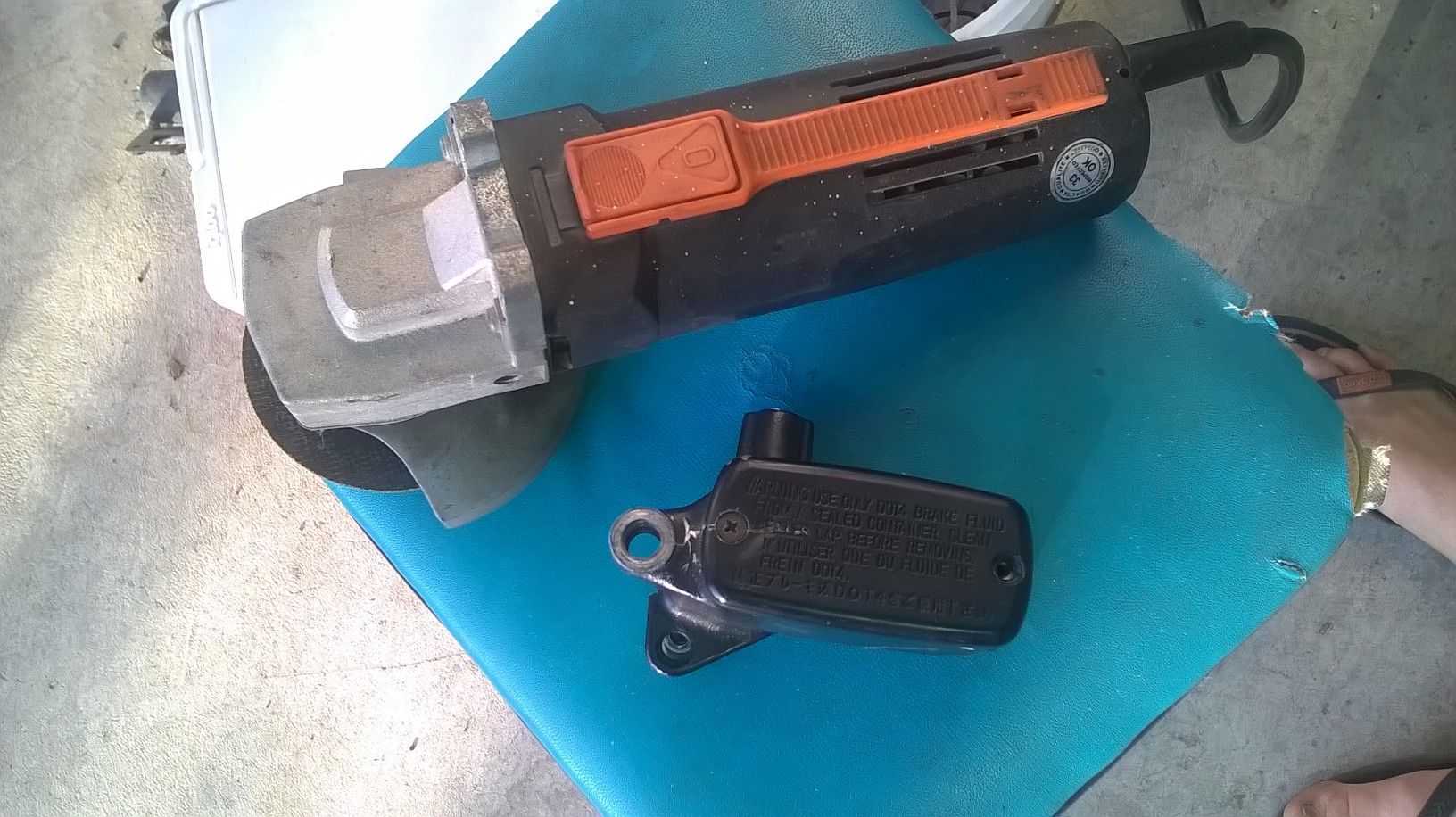 Purely a cosmetic mod but my front brake master cylinder doesn't match the clutch one. The front brake has the mount sticking out for the mirror and the clutch doesn't (one off a faired bike and one off a naked). Anal I know but it will drive me batshit so I cut of the mount. Just needs to be pulled apart and painted and you will never know. Least my sanity will be safe lol