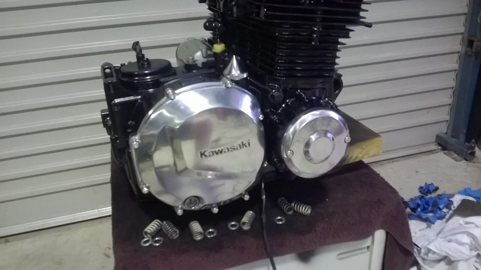 Engine nearly ready to go back in. Going to replace the clutch plates and need to finish polishing the engine covers then pop it back in the bike. Excitng!