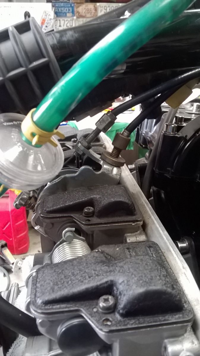 Packed a paddy with having to wait for new push pull cables for the Mikuni carbs to arrive so had to make some adjustments to get things rolling again using the original KZP cables, Yes, I know, looks a bit dodgy but hey it works!