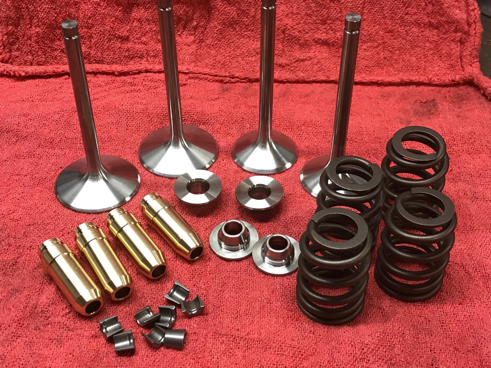 Just got a sneak peak from Chris at Schumann Motor Works. He is making his top of the line custom valve train, complete with titanium valves (1mm bigger on intake) custom bronze valve guides (reduces the valve stem diameter from 8mm to 7 mm), beehive springs, and titanium retainers. He is also doing some porting to blend out the bigger intake valve. This was way more than I initially reached out to him for, but he called me up saying hes stuck in his house with the "Shelter in place" measures, so for a small increase in cost he is giving the cylinder head the full treatment! This program just got kicked up a notch. This may be the only KZ750 twin in the world with titanium valves.