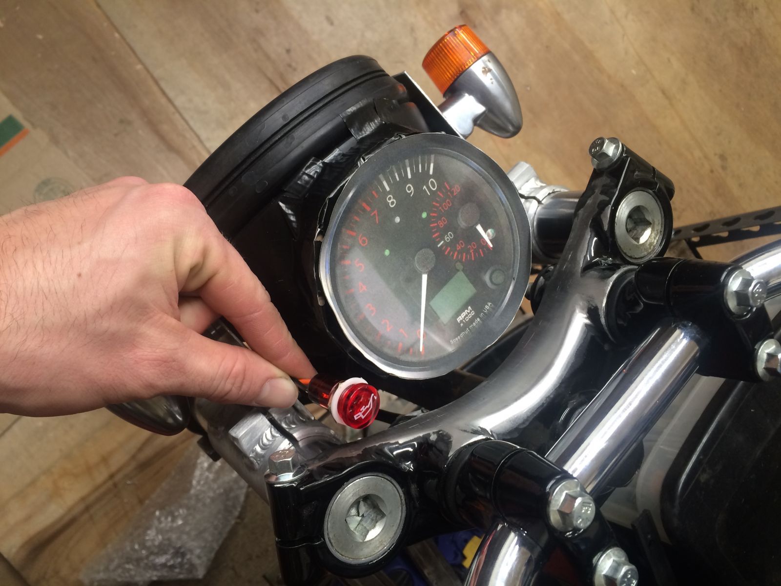 the only bummer about doing the tach/headlight combo is there is no logical place to put this oil light. any suggestions?