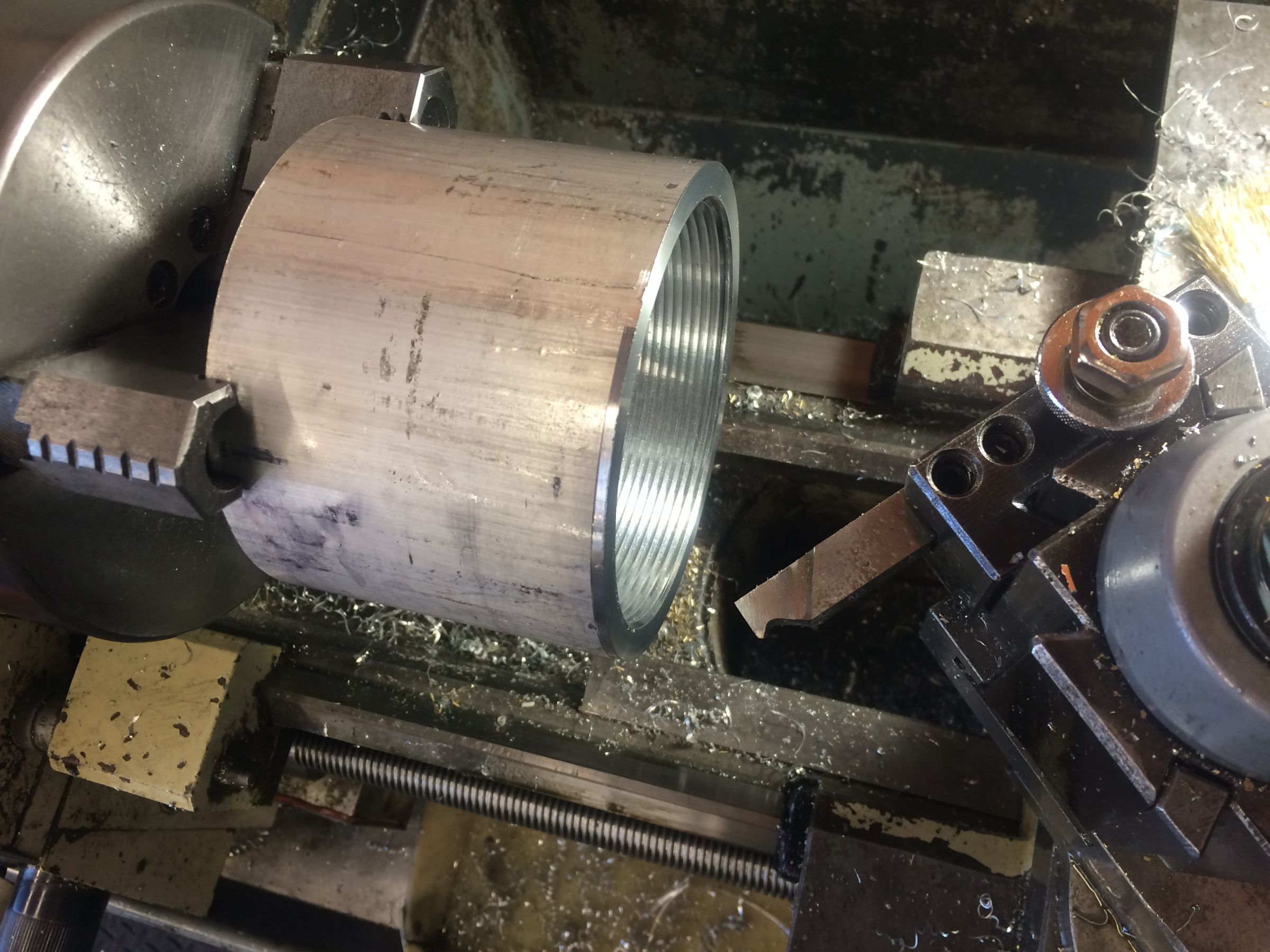 Had a little down time today so I re did the gauge housing. The threads are much nicer this time. You can see the one on the right has less chatter in the thread. I also added a little lip that I will leave polished with the rest painted.