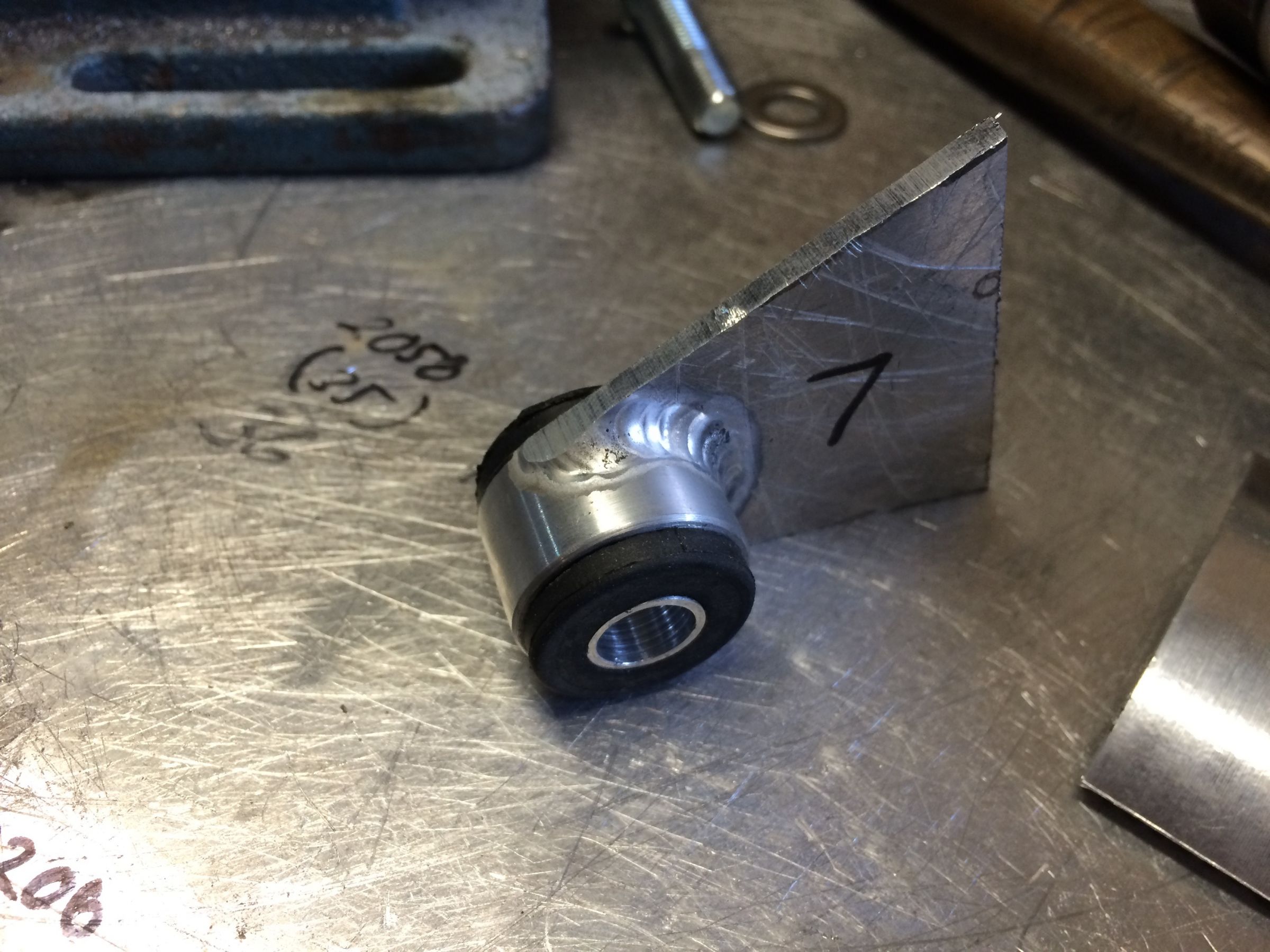 The mounts on the headlight bucket weren't parallel, and for some reason this bugged the crap out of me so I jb welded some washers in, and used some all-thread as a jig. I coated the all-thread and nuts in grease so I could go nuts (pun intended) with the jb weld and still remove the rod and nuts.