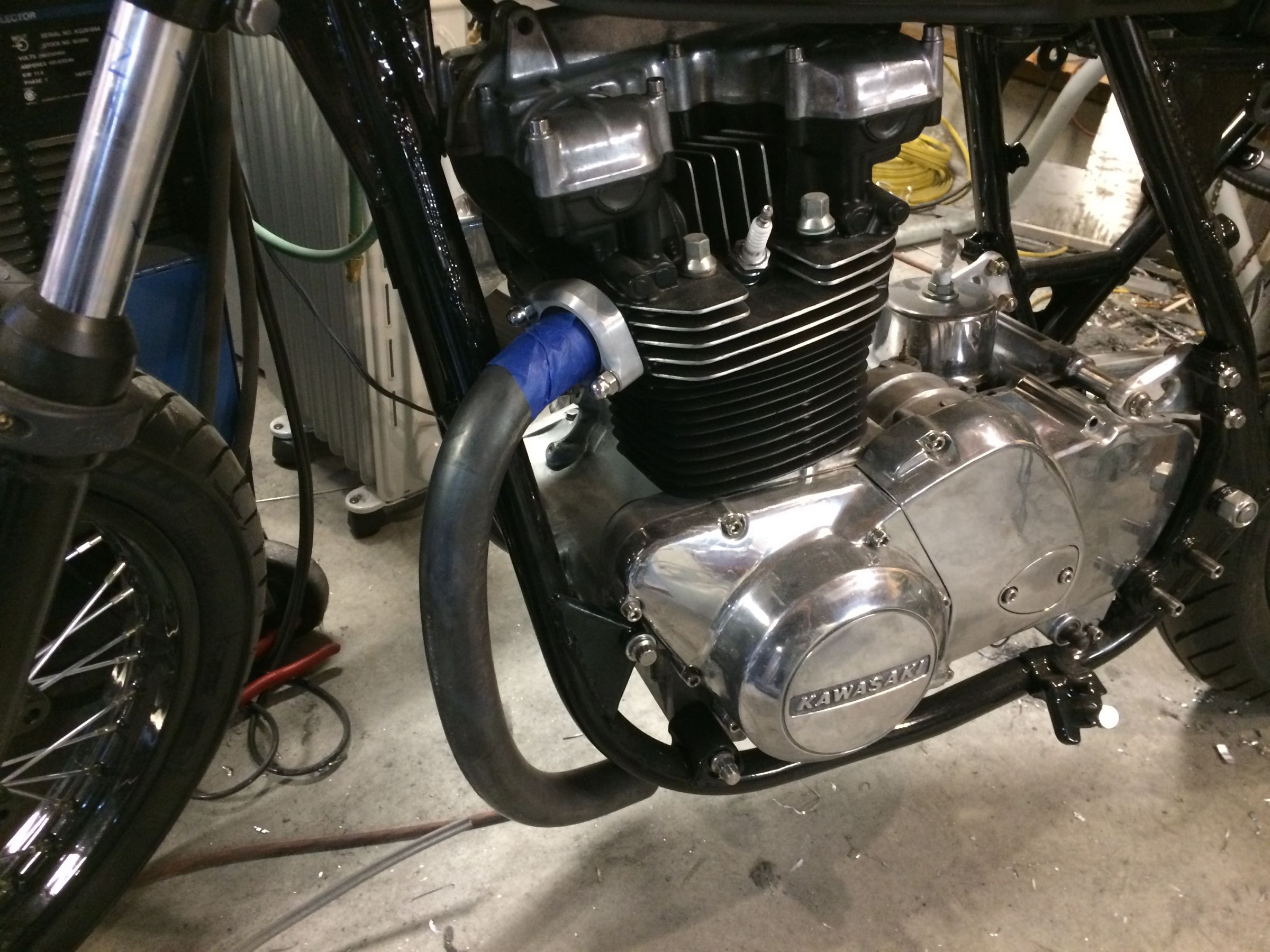 It took me a solid 4 hours to grind and polish the welds down but I am pleased with the result. I decided to rubber mount the headlight since I have an expensive tach riding in it and don't want it to rattle itself to death. The turn-signal stems are too short now and I will need to turn some longer ones. it never ends.