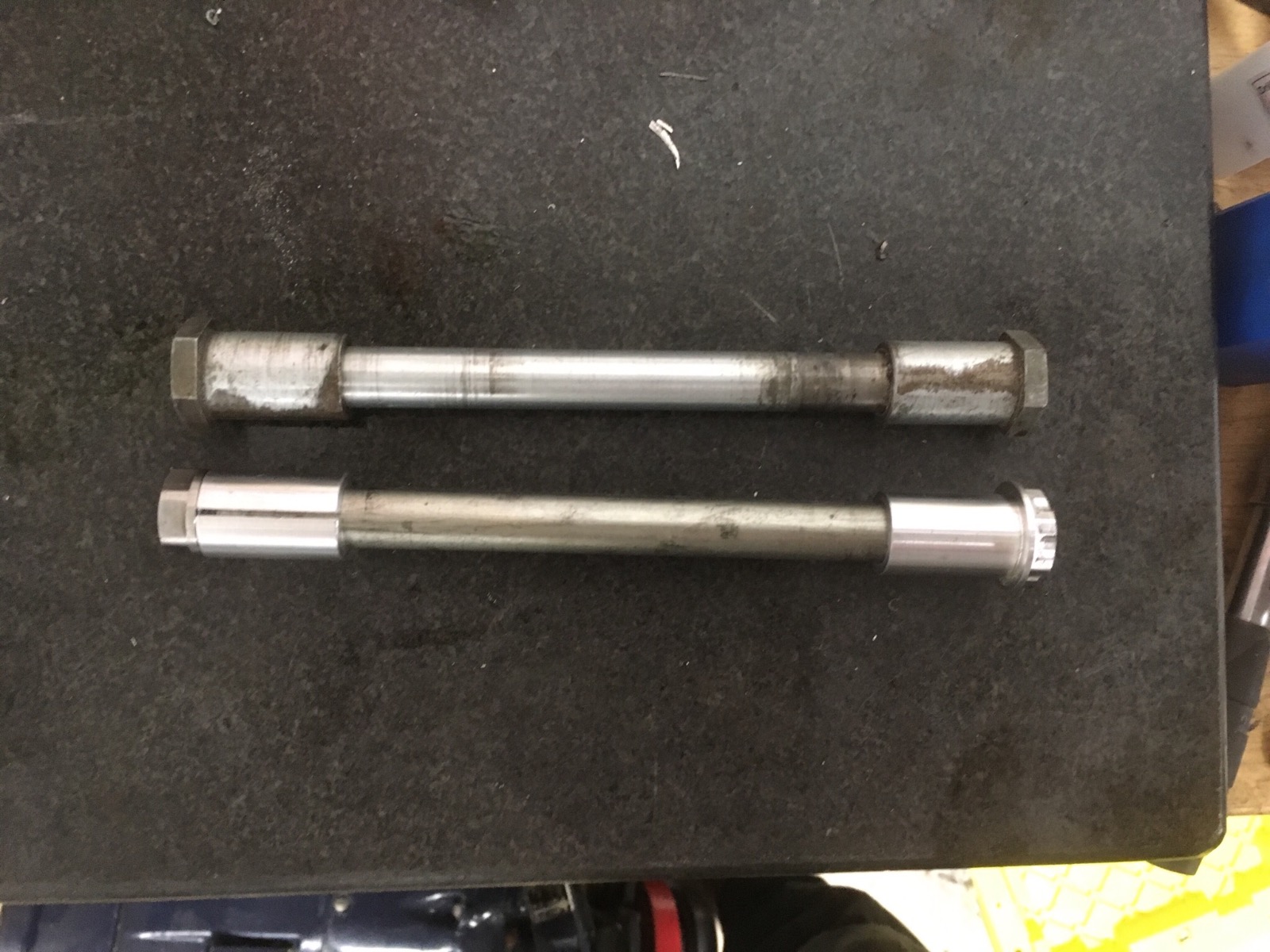 Spent some time on the lathe and mill today. Whipped up a new front axle. I repurposed a hollow katana 1100 axle and welded a custom 316 stainless nut on one end. The other side is 7075 aircraft grade aluminum. Weighs 8oz less than stock.