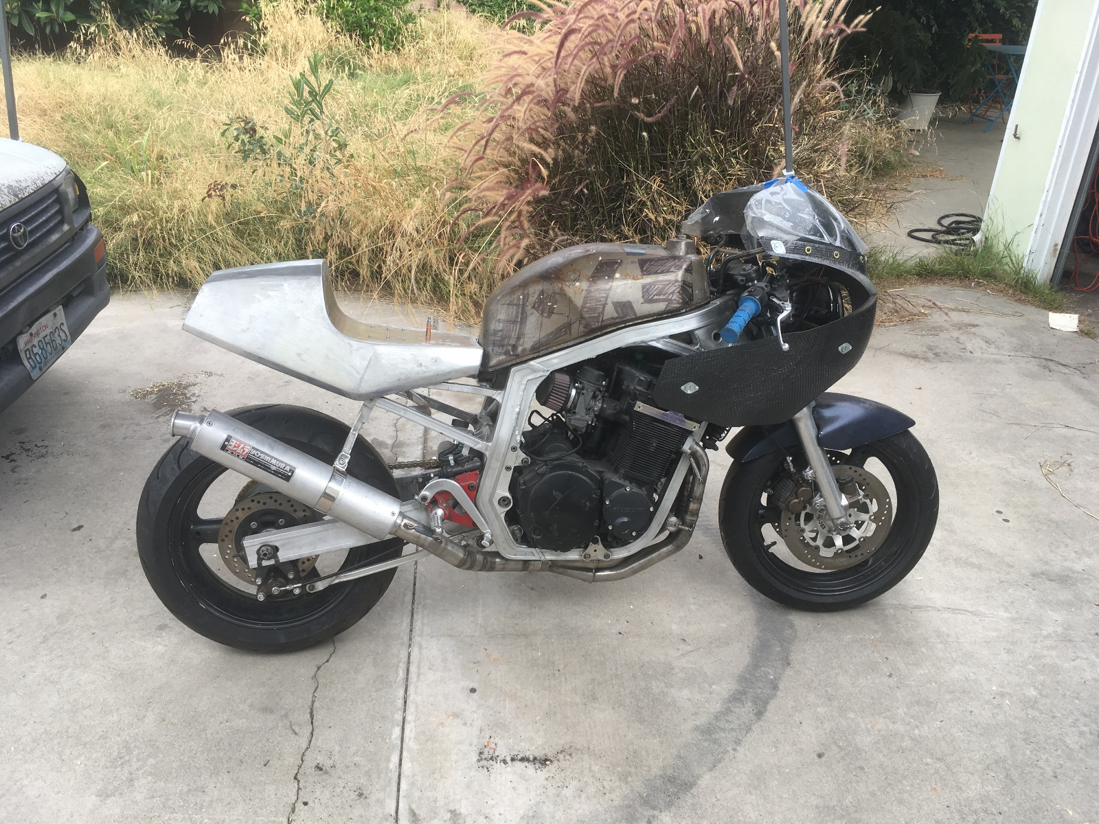 I have been distracted by this '86 GSXR750. It now has Bandit 1200 power! custom aluminum tail by myself.