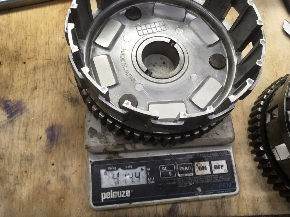 I talked with a guy in Canada who has been racing and developing this platform. He has given me tons of good info including this tip to run the clutch from the belt drive engine. This clutch is different because it has an aluminum clutch basket, and the clutch is actuated from the right side of the bike. This not only allows a much larger countershaft sprocket by removing the clutch push rod, but also removes over a pound from the flywheel!