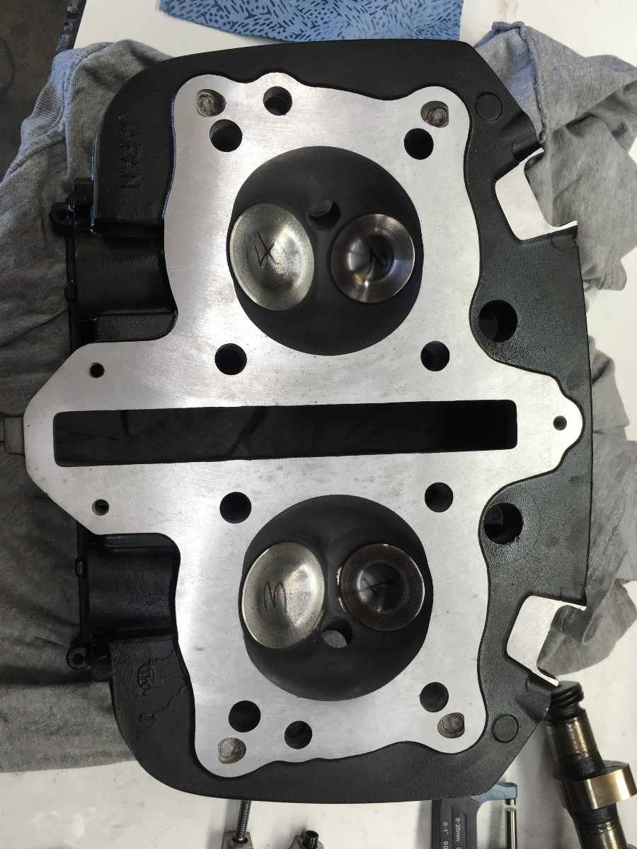 I remeasured the cylinder head volume. The new titanium valves have no dish and intakes are bigger so the volume is smaller than previous. cyl 1 is 46.4cc and cyl 2 is 47cc