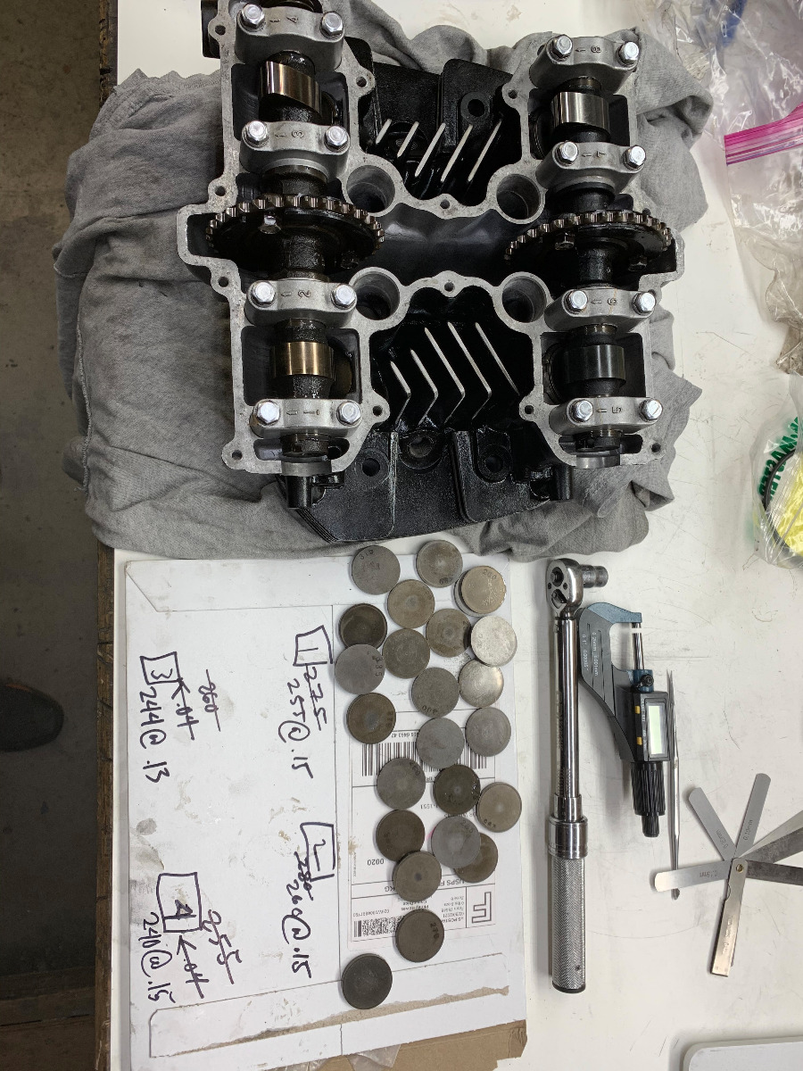 I usually bench shim the valves if the head is off so i don't have to mess with it on the bike. it looks like i have alot of shims but they are all in the same sizes from bikes i have parted out, luckily I had exactly what i needed from the last head rebuild.