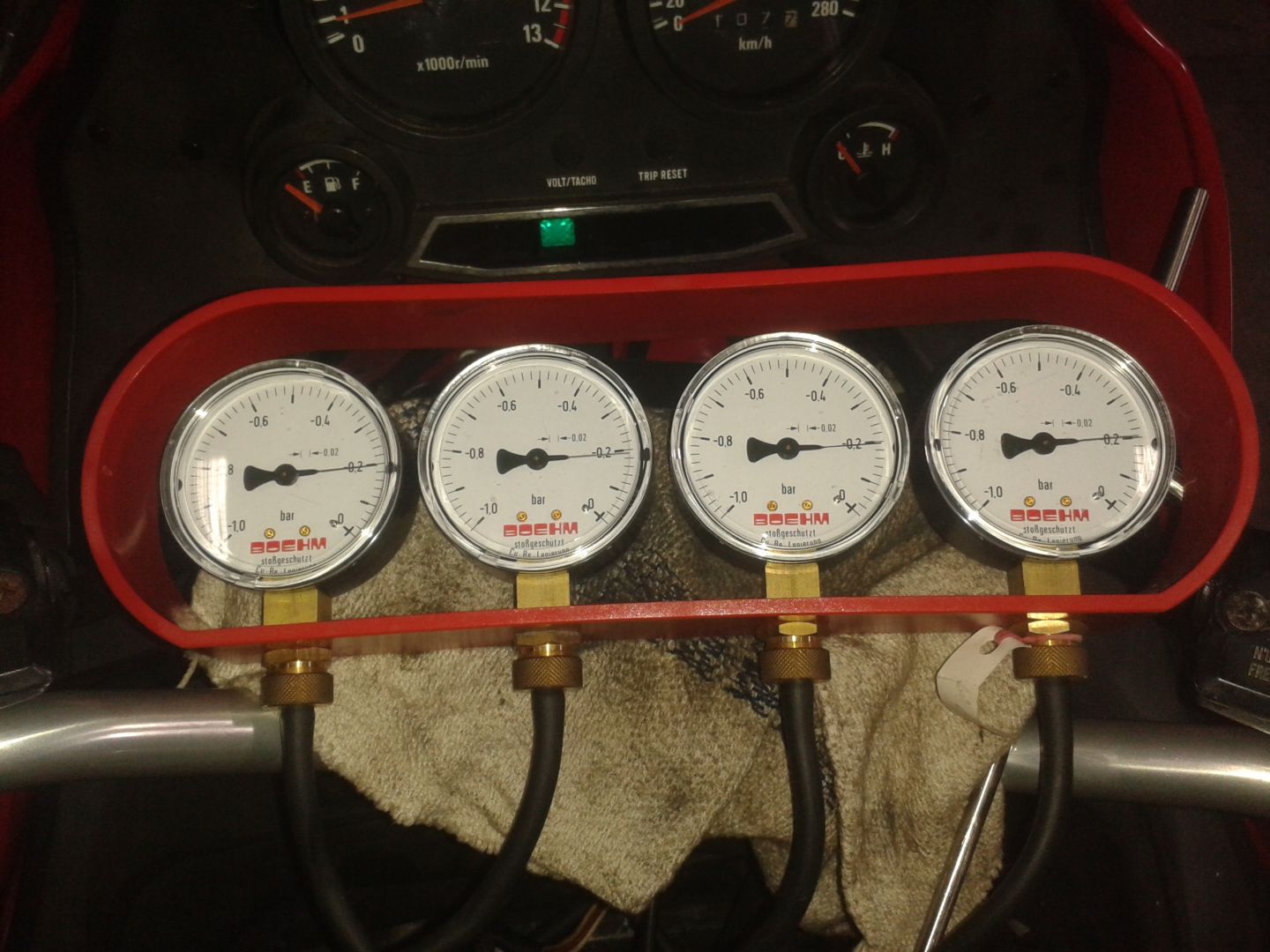 Don´t use the cheap chinise carb sync gauges, they are junk without an adjustable damper valve, so you can