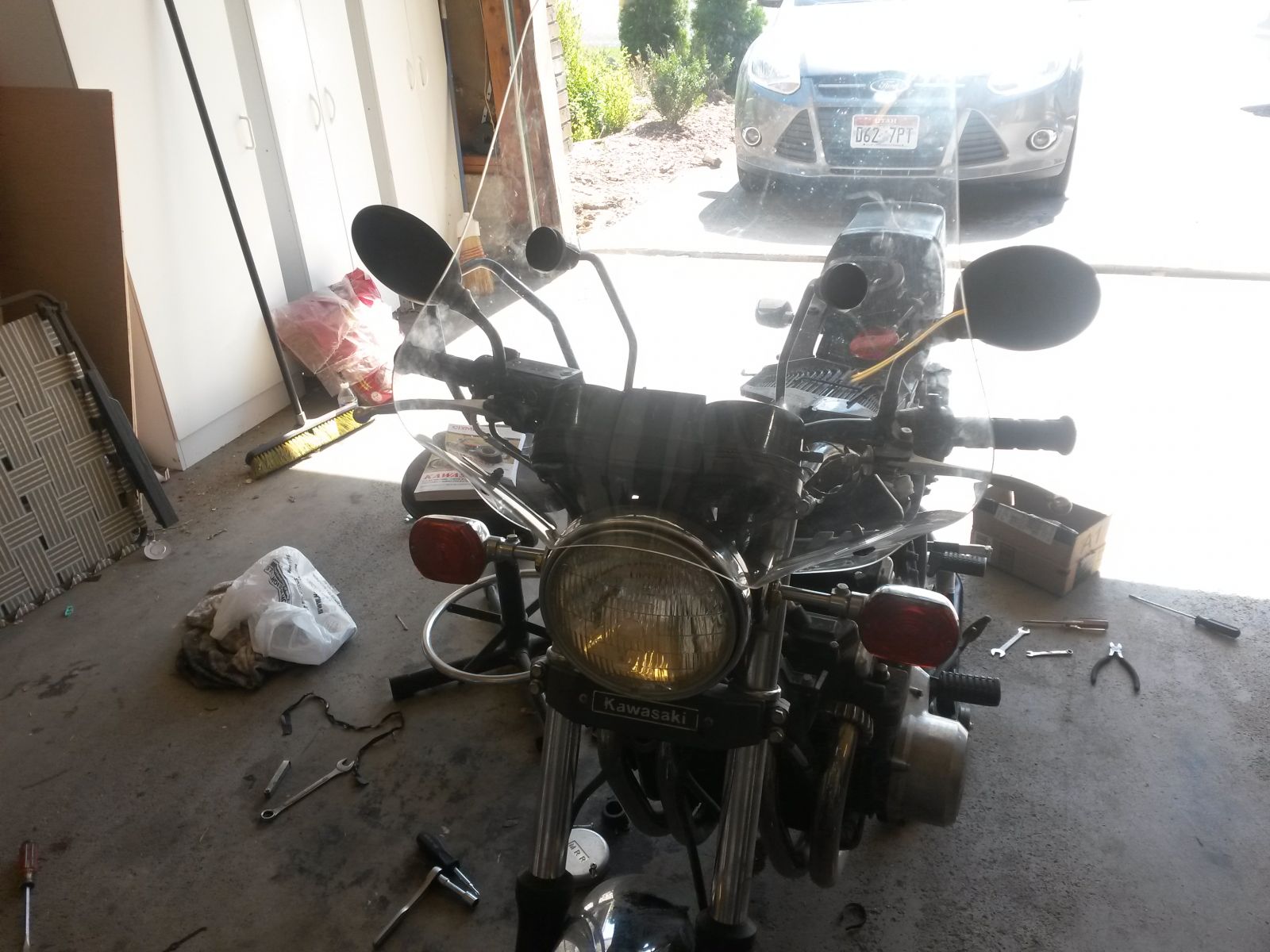 Going a bit slower than I wanted, I should have everything I need to have it running decent except for the obligatory odd part here and there. I still need to rebuild the carbs, The choke collar on #4 is busted and the plunger doesn't move freely so i gotta figure out what the issue is there. The valves were within spec so i didn't have to mess around there. Compression is a bit on the low side but consistent so I'm hoping with some regular running it will come up a bit. I put on the new intake boots, the old ones were loose and kind of mangled. I have to seat the airbox boots correctly. Finish retrofitting the KZP speedometer then figure out something for blinkers, the LR didn't match the others and the Chinese ones I ordered don't fit right. Then I have to mount the windshield i picked up from the local classifieds for $15 and we should be good to go.