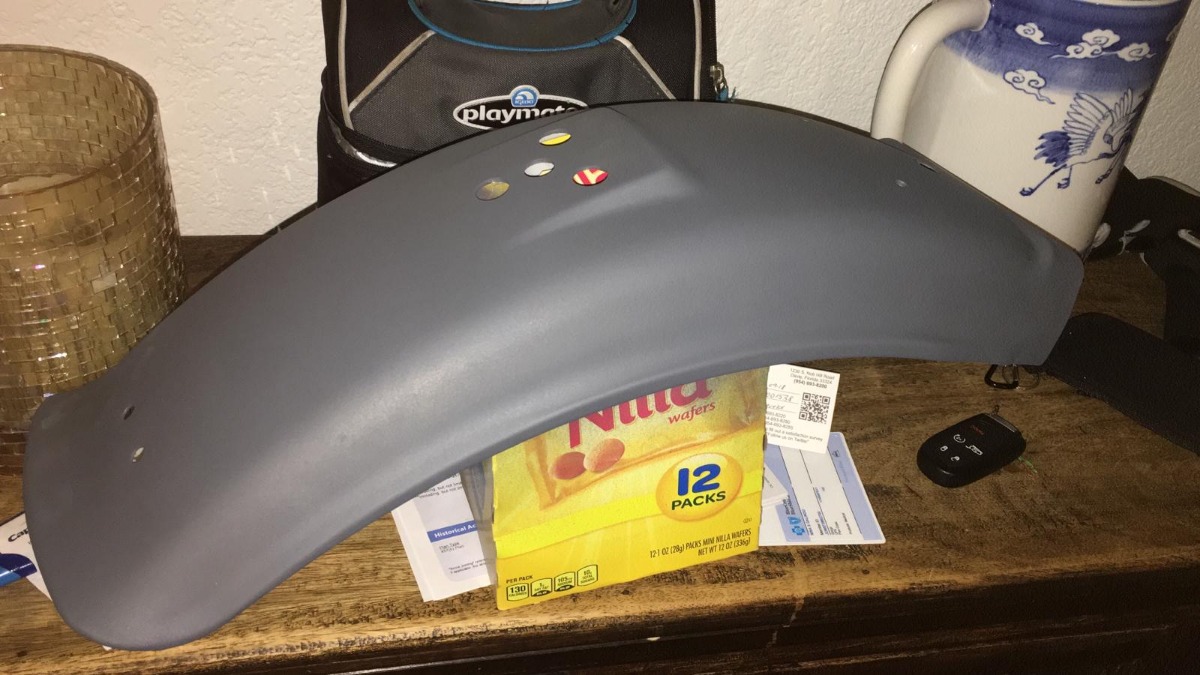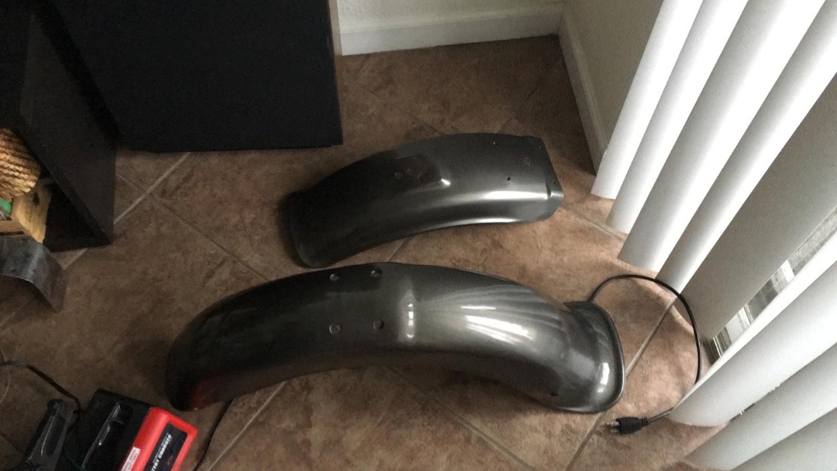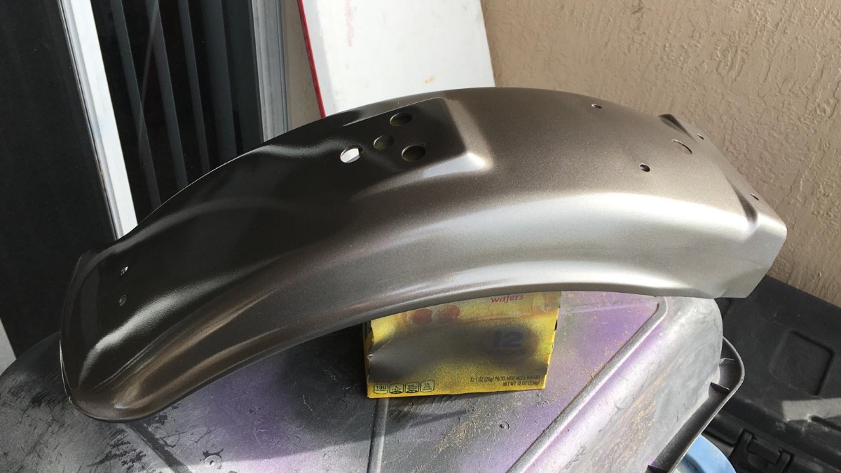 This was followed by the front fender, which was covered on a really tough coat. As a result, it ended up with a few scratches that I did not get rid of on my haste to finish it. Looks fine from 5ft away, but I will probably scrap or re-paint it down the road. I am sort of partial to chrome fenders... we'll see what the future brings.