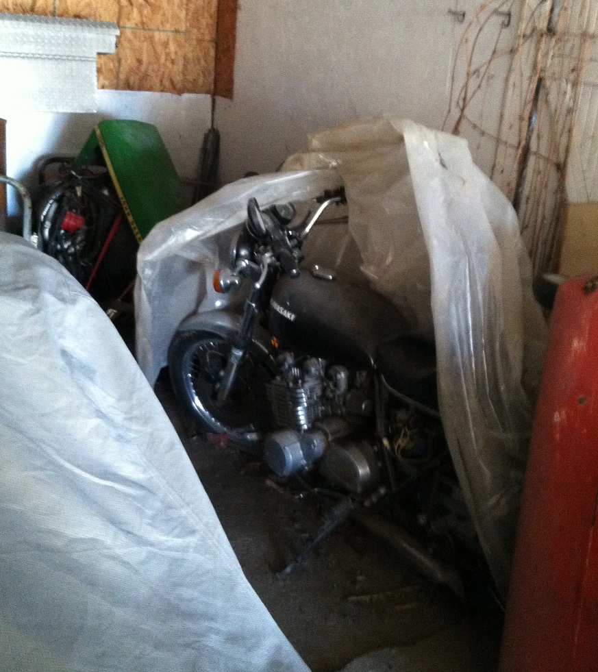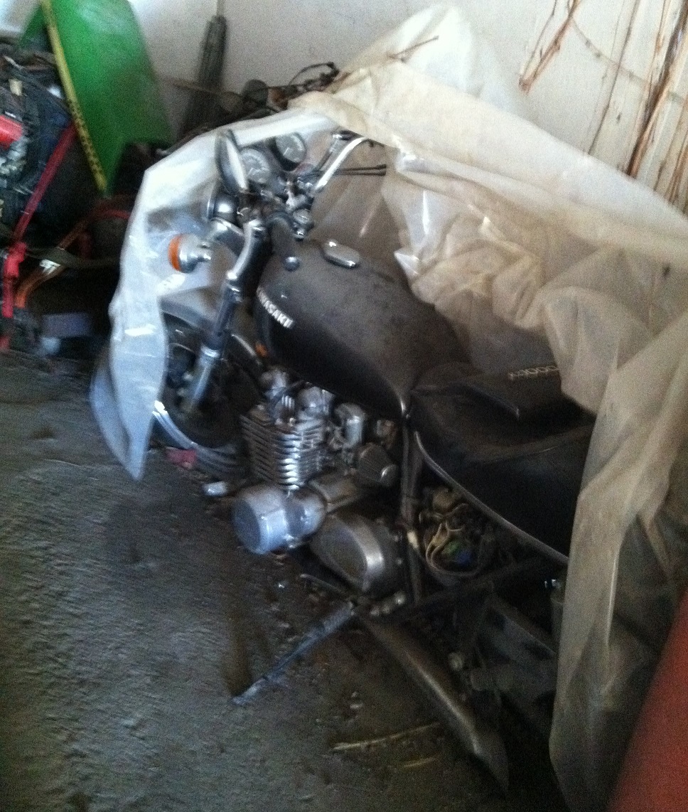 22 Nov 2015 06:41z1kzonly wrote: Another Barn KZ1000 1977. Ironically I painted this bike GM medium gray metallic about 15-16 years ago. Has the big ugly touring, double bucket seat. And Butt Ass ugly muffler turn-outs and dry rotted tires. Told it was sitting for 7-8 years here in a "Barn" Covered up.