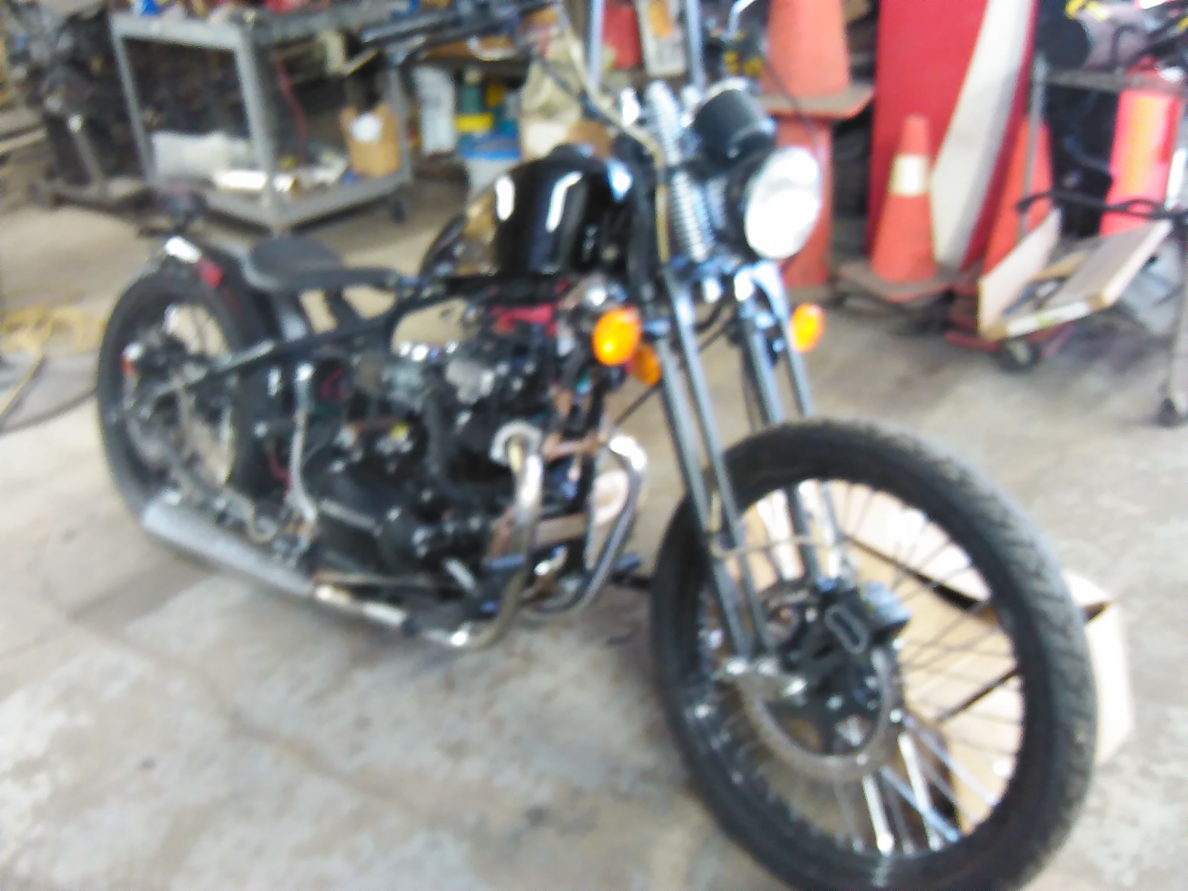 The engine is already in the bike it came to me this way. The wiring was all butchered up by the Harley guys that worked on it before. He just wants me to get it running. Our mutual friend is a fantastic welder/fabricator who does frame off car restorations at a level that's hard to imagine. He and his dad also built and raced stock cars. When he's not doing that he's a local cop that does all.the crash investigations. I'm sure the bike.will be safe before we give it back to him. I don't think he's going to ride it much anyway. I don't see someone 60 years old that has back trouble wanting to ride this thing. It's a hard tail with a Springer front end.
