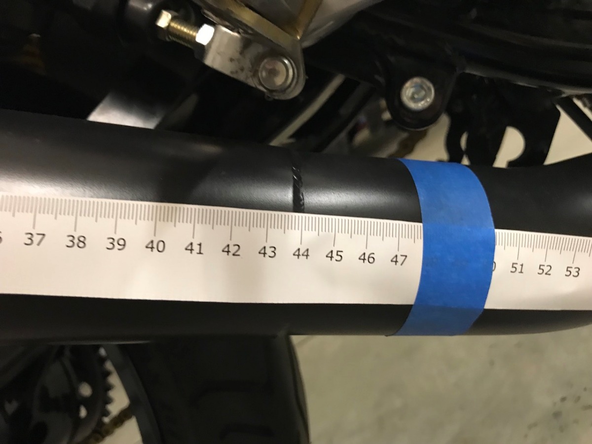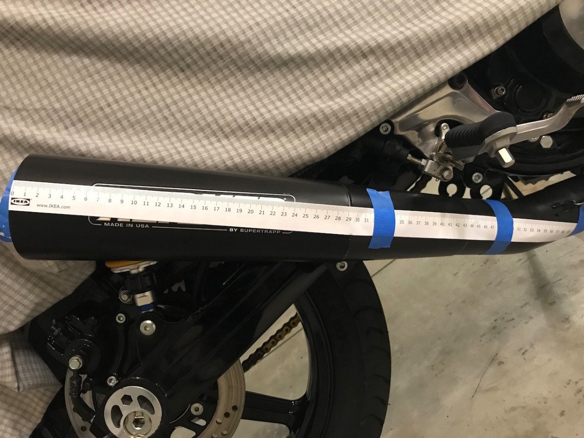 I then slipped the 20° bent section onto the header and slid the megaphone on to that and then slid and rotated the different parts until it all cleared my rear shock, was the right length and was the correct angle. It took me weeks of fiddling with the length and angles until I was happy with how it looked. (your bike has a wider swingarm than mine, so you will have to adjust everything to clear that)