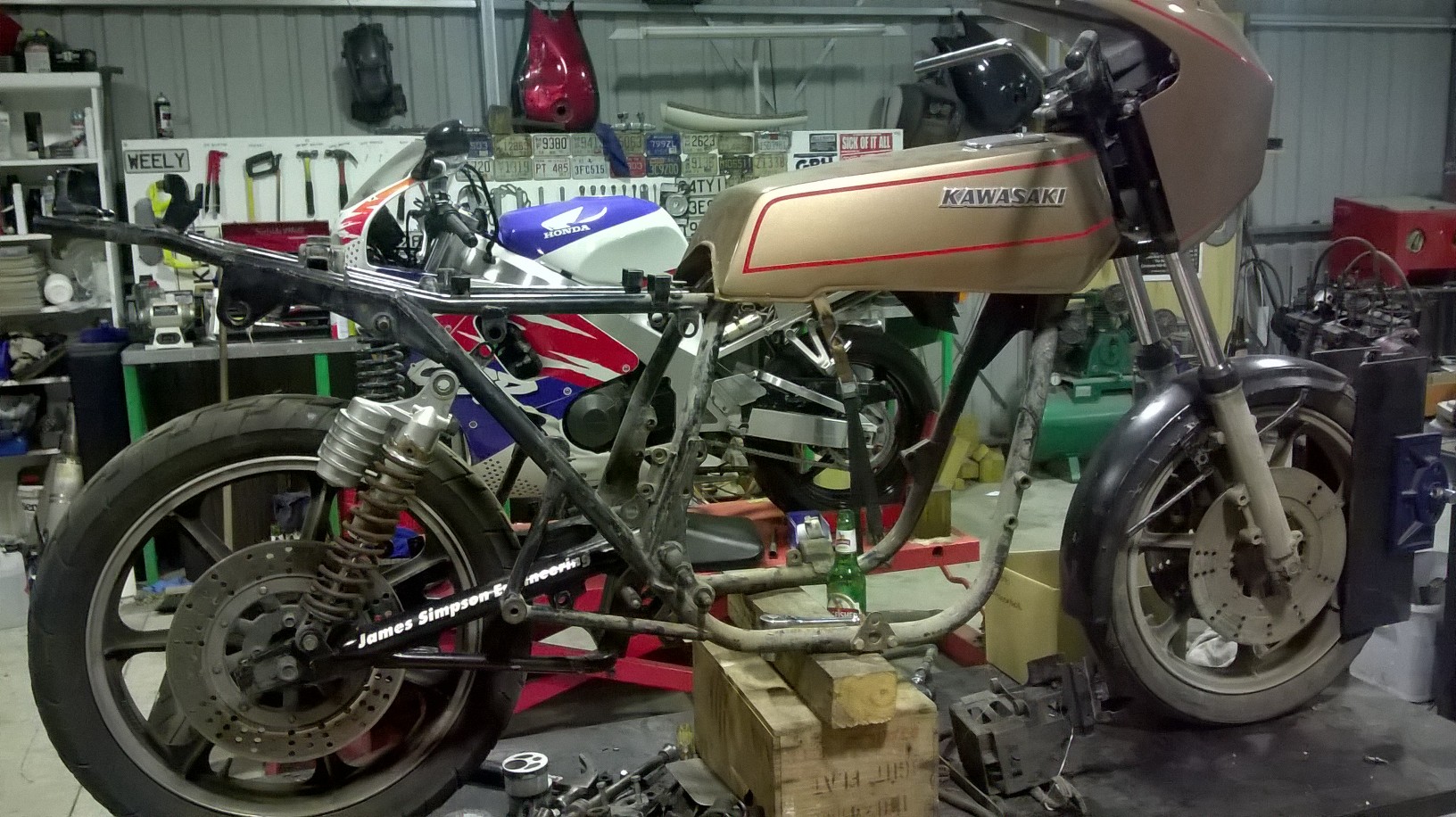 We're rolling now, shot down to my mates shop to use his tyre (remember no American English in the Kiwi Z1R build thread). If you are in Onekawa, Hawkes Bay, New Zealand call into Bikeworx!