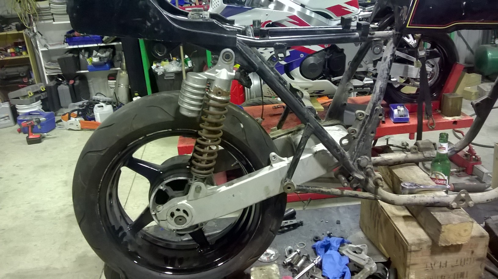 I popped it in for a look and am pretty certain that I will go down this route. I couldn't build a bike back to standard but I would still like the Z1R to use the original wheels and have the original style still pretty much intact. One thing I would like is to lay the shocks down but haven't decided quite how yet. Maybe off the rear of the swingarm or by making a mount for the frame. I don't want to cut or weld this frame if I can help it.