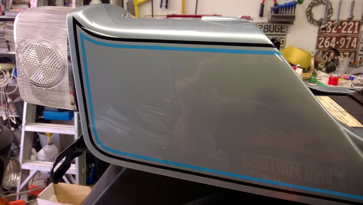 While I'm on the happy buzz I just have to say how stoked I am with the paint work. Line work is awesome and really sharp. You'd never guess it was done with a tape and a gun. All cut and polished and not a lump, bump, or raised pinstripe to feel. I know the stripes aren't original being painted on and they are a touch wider, but man I love it!