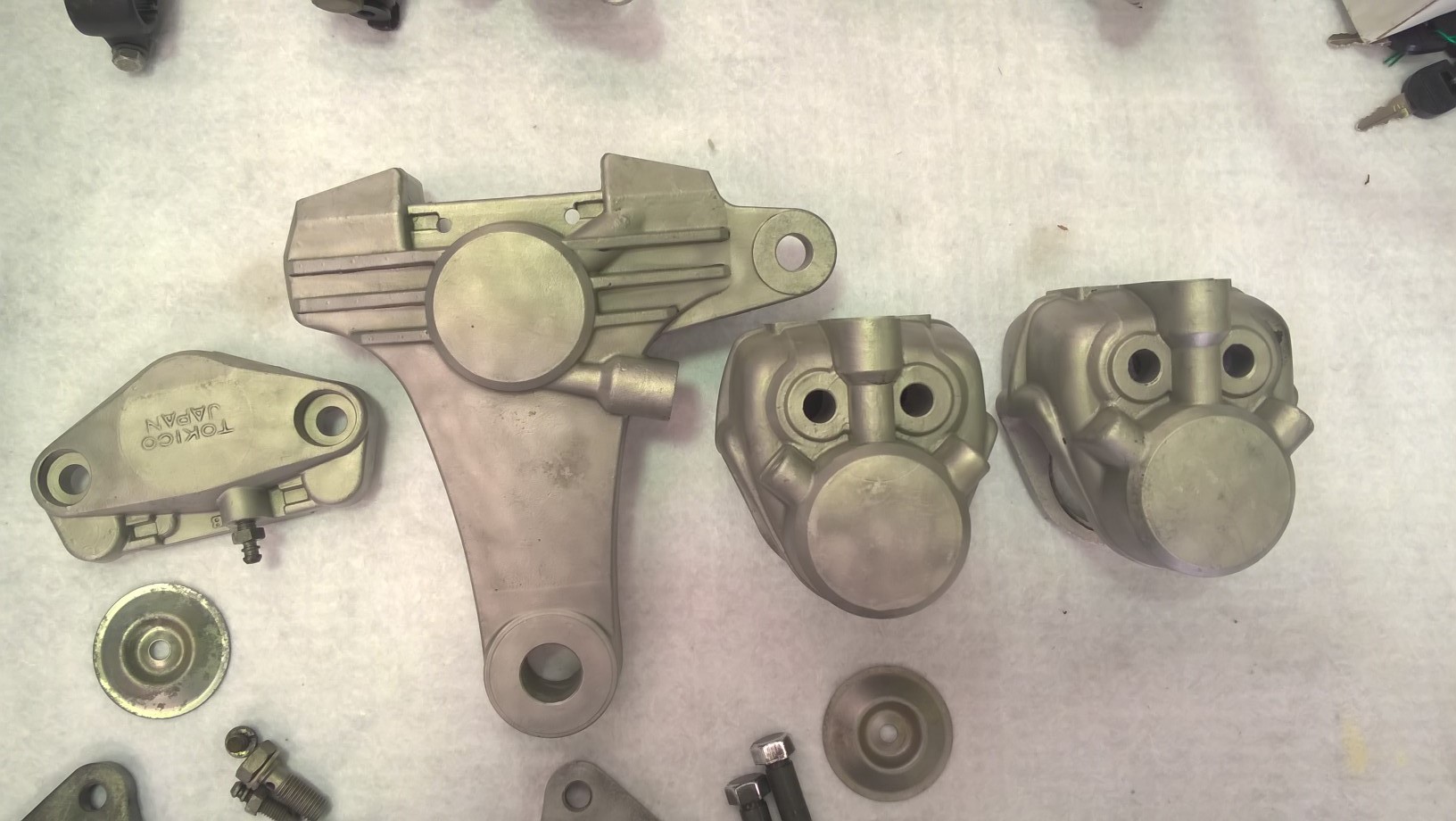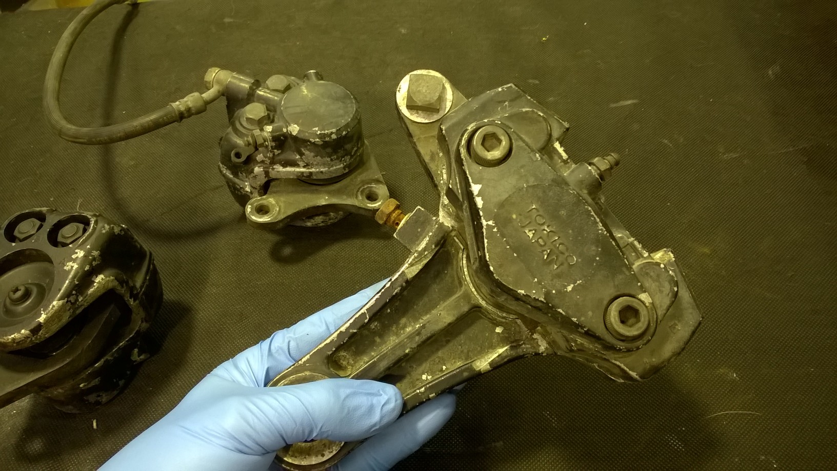 Wow, i looked at the date of the last post and she's been a while! Got sucked away with work and just haven't had a chance to get near the Zed. Luckily I have had a chance this weekend to start doing a few jobs. Calipers are the job of the weekend so I started by glass blasting the mounting hardware while the calipers sit and soak in some degreaser. Specially the back one as it's full of grease from squishing out the stuck piston. Tomorrow i will crack on and glass blast all three calipers ready for painting. I ordered a bunch of parts from Z1 and with them is all the rebuild kits so i will be good to go once they are painted. I am using the old pistons mainly because the have no pitting and have polished up really well and because I can't afford new ones lol.