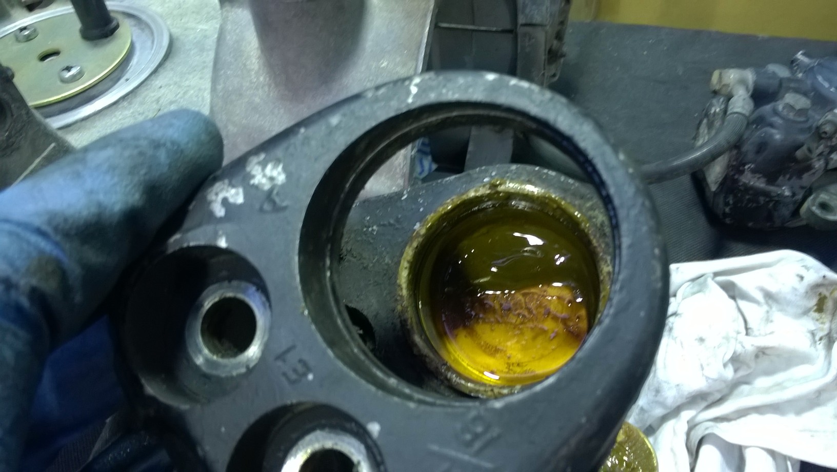 11 Sep 2016 23:51Tune-A-Fish wrote: Maybe bolt it back together with a thin chunk of scrap aluminum plugging the passage to the other side then make up a grease fitting to pump grease in to push it out :whistle: