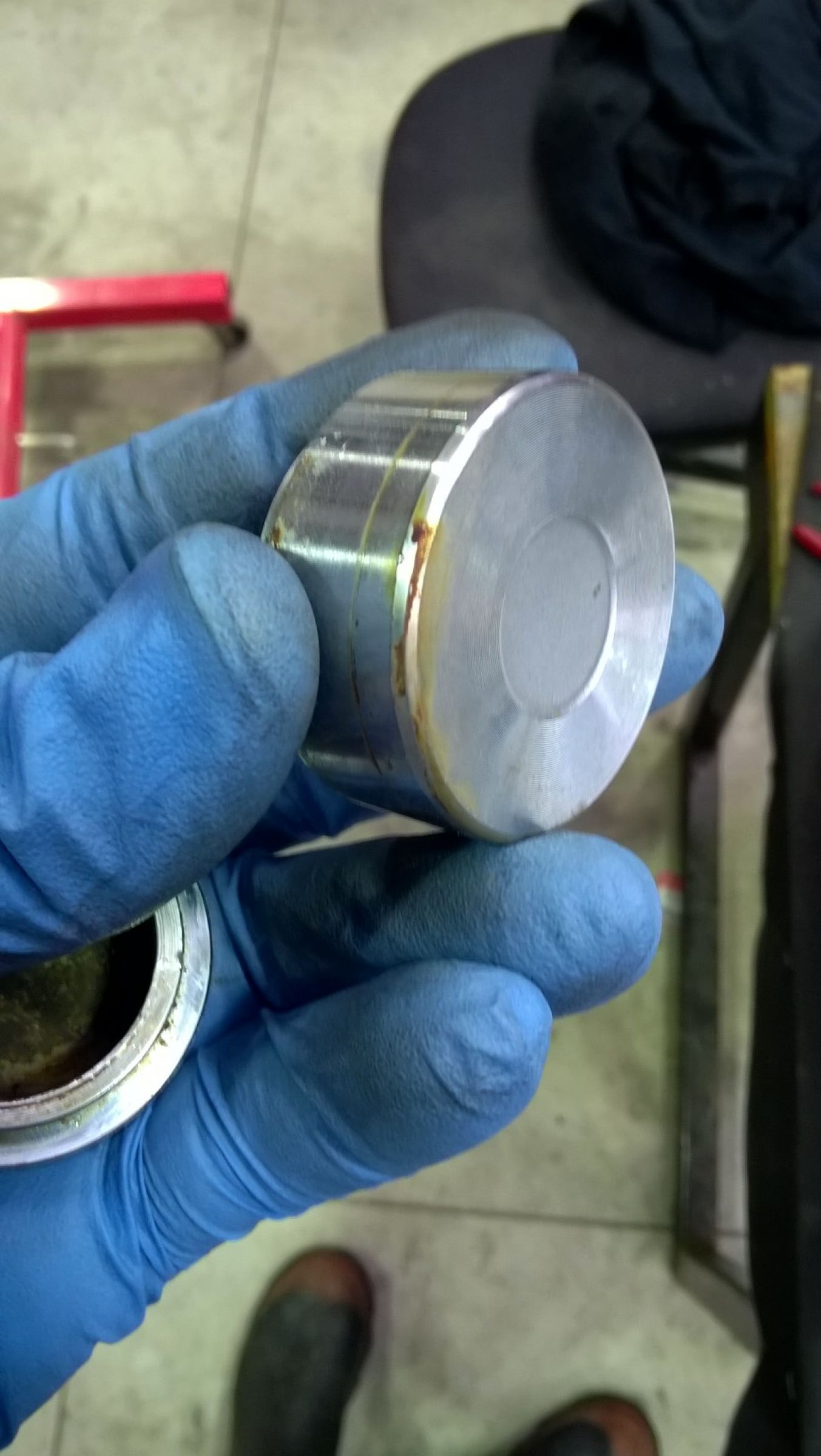 Finally got some time to do a few things on the beast today. Since I now have a nearly rolling chasis I thought it was proper and fit to sort out some brakes for her! I finished the back wheel and I don't want to fit it until the rear caliper is ready to go. Soooo rear caliper would probably be the priority lol! Front calipers aren't to bad but the rear is utter utter poop. I did get it to bits and one piston out but the other is firmly stuck in. I have it soaking in CRC for the night and hopefully it will come out with another concerted effort. Off to order some caliper kiits now!