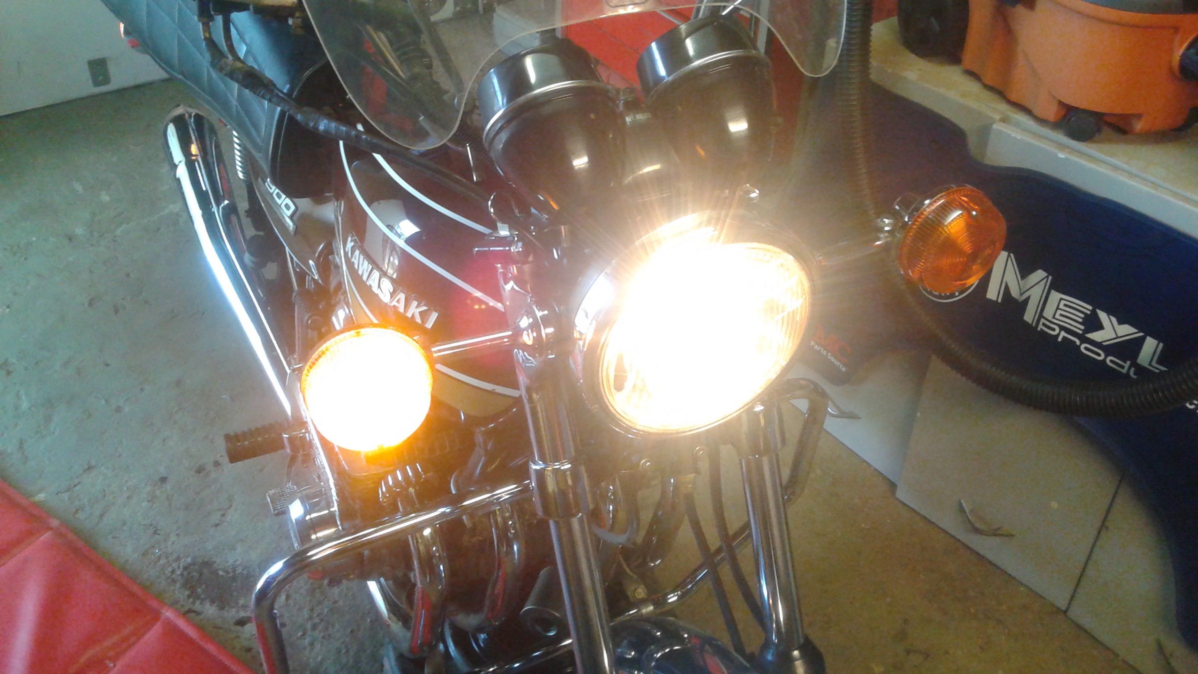 Jeff @ Z1 Enterprises is very knowledgeable about KZ/Z1's, i had a great phone conversation with him today. The other day i pulled the plugs, fogged the cylinders and gently kicked it over a bunch of times by hand. I just changed the oil & filter, hooked up my jumpbox, sprayed some starting fluid into the airbox and it fired up!!! Then died of course but those couple of seconds was music to my ears! All the lights, horn and switches work as they should. Now i plan to order a carb rebuild kit, M/C & caliper rebuild kit from Jeff. I also need the bolt that holds the oem pliers together, it's missing.