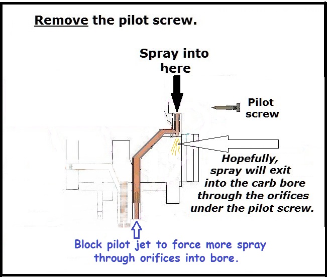At closed throttle and low rpm operation, It's critical that fuel mixture passes into the carb bore through the small orifices located near the pointed tip of the pilot screw.