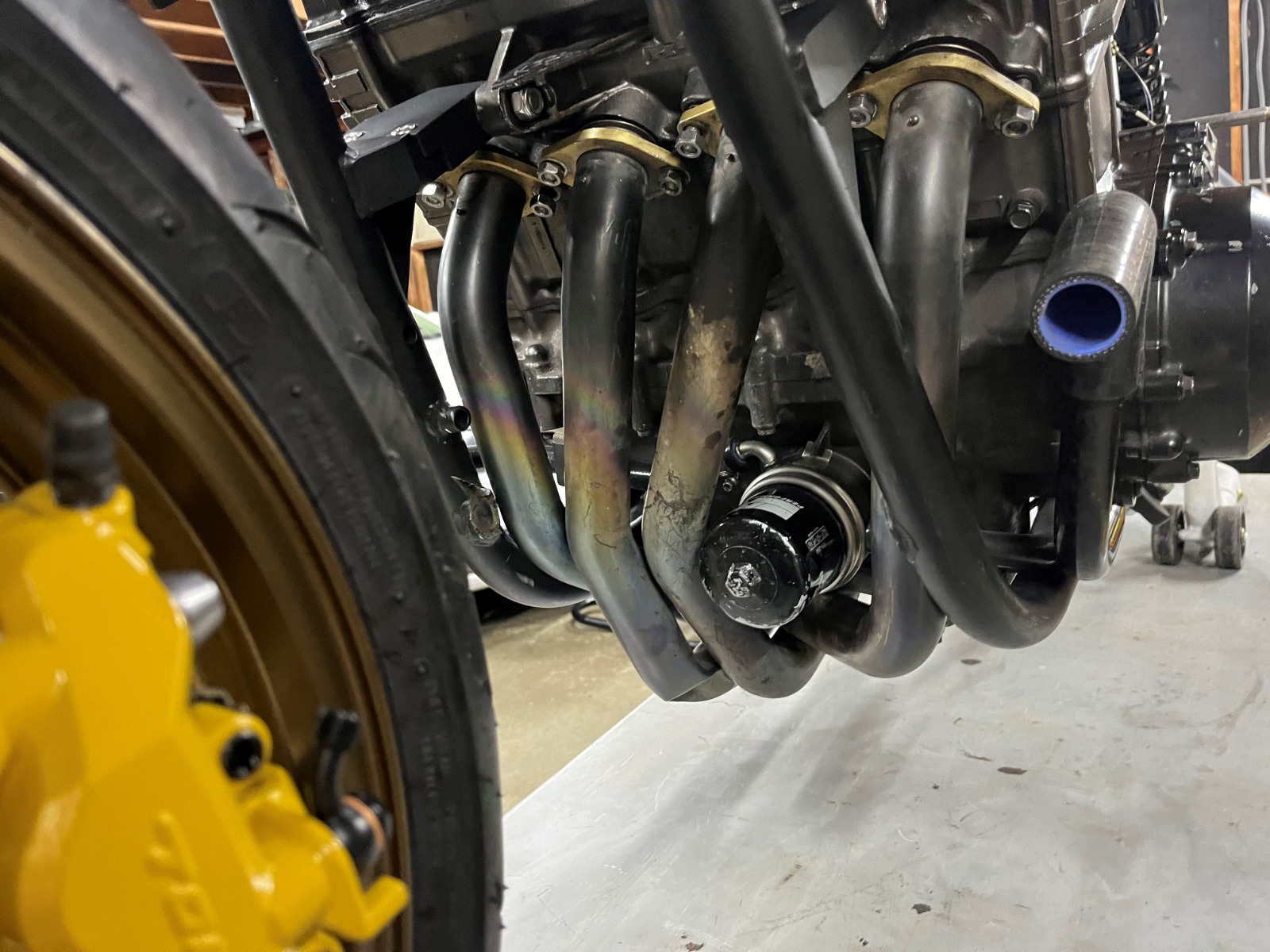 Yeah, the #3 header tube is tweaked a little bit so gotta see if my welder can fix it up for me. As for the tube, i have a couple ideas but need some time to weigh the options. Without the bar there it makes fitting the OEM filter much easier, haha.