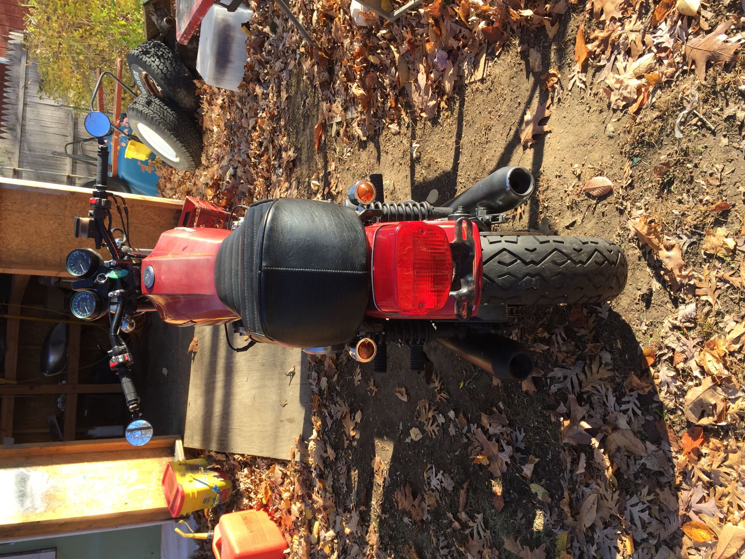 The owner who had it before the man we got it from went nutty with the flat black spray bomb without removing any parts or masking anything. (engine, carbs, shocks, fork legs, exhaust, dash, etc)
