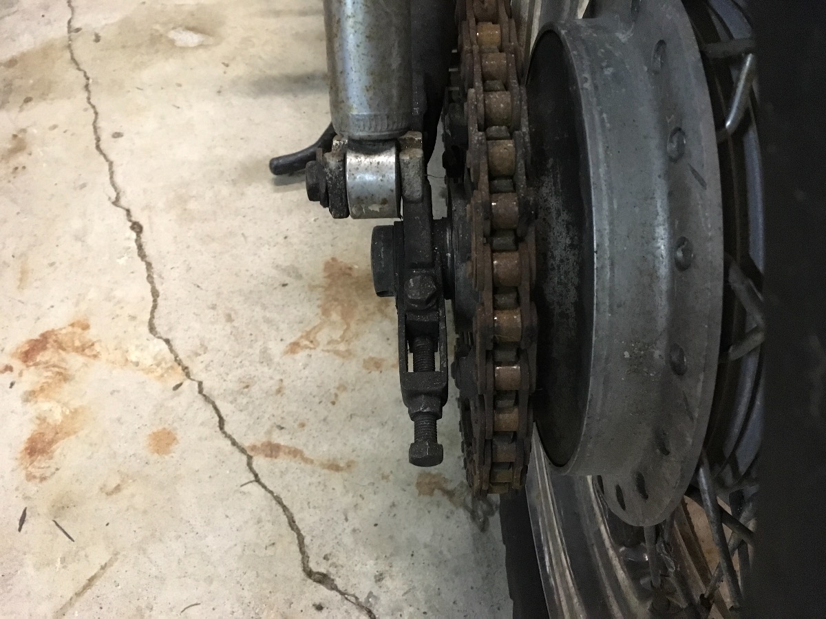 I just noticed if you inlarge the photo of the chain, the sprocket is ridding to the left side of the chain. Maybe it just needs some spacer work done to shift the rear more to the right