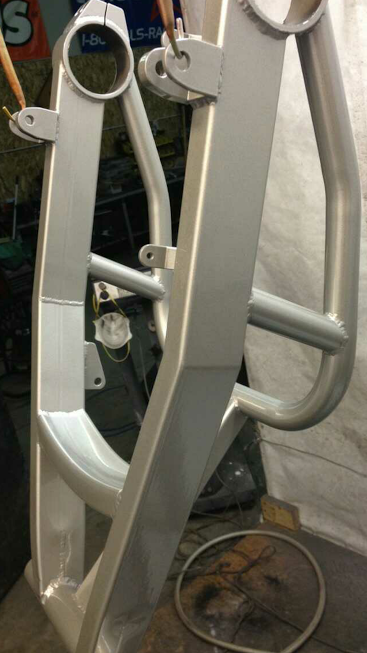 Pics from my powder coater, swingarm is done and pick it up tomorrow, porsche metallic silver
