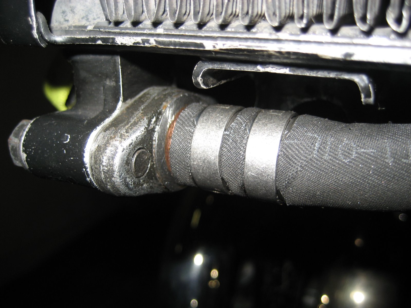 On the oil cooler end you have to cut around the pressed fitting of the GPZ1100 UT oil cooler line because the pressed shell is hard solderd onto the fitting.