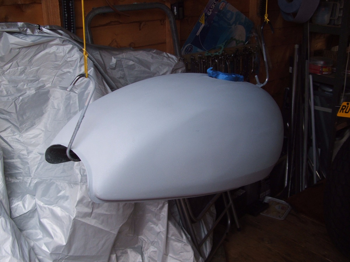 Tank and seat unit in progress, well in primer actually.