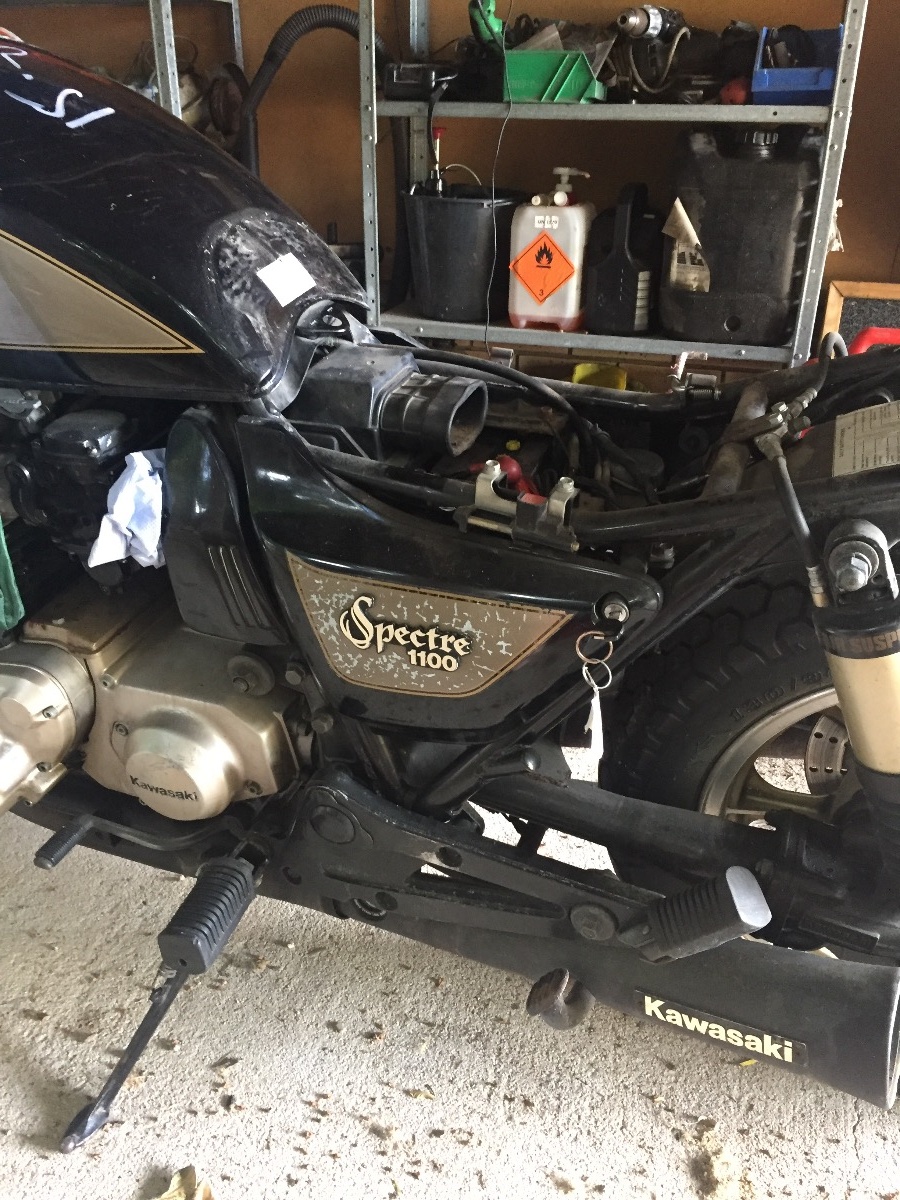 thats looking great, alot of work there..I just picked up an 83 spectre 1100 in similar shape. I like the fork boots, reminds me of my XT500 I sold awhile back to help finance a more roadworthy cycle.
