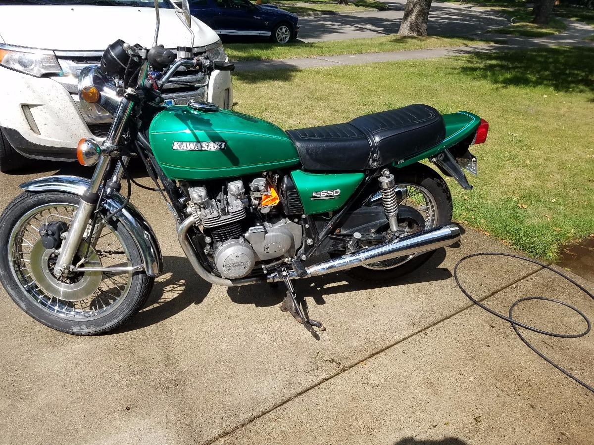 Well I finally got my "Barn Find" a 76 ( or 77 ?) kz650. Caught a craigslist add and called the guy. He said he listed it for his Dad, needed work and not running, includes bunch of spare parts, extra engine, and a title.