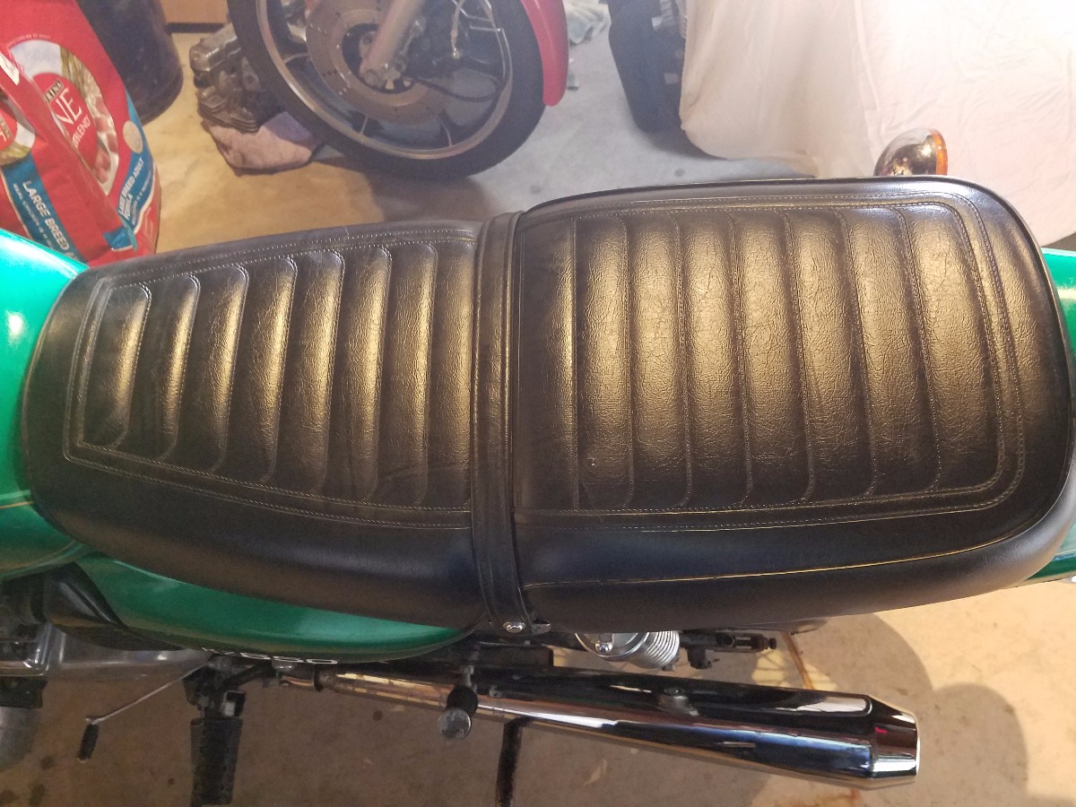 The seat is fantastic, just a few tiny pokes in the cover. Great original seat cover.