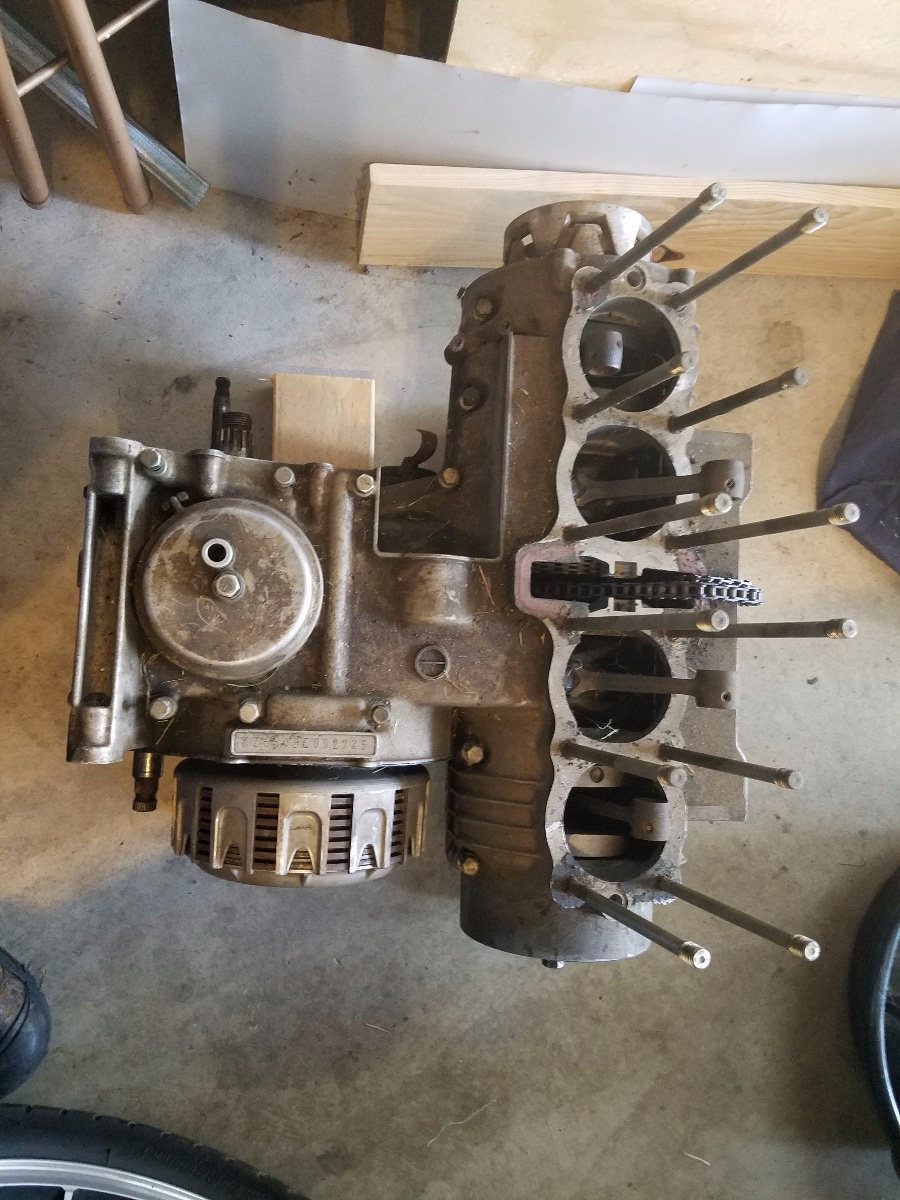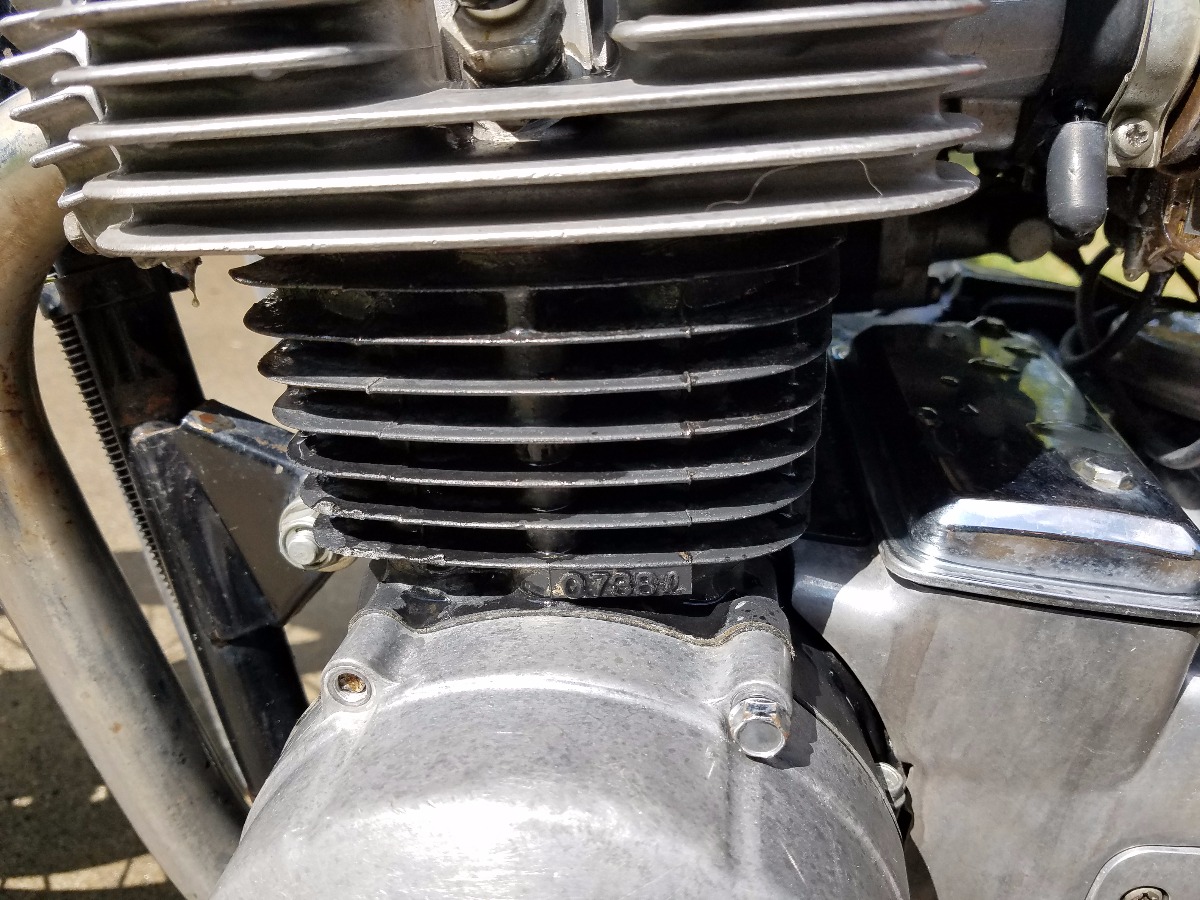 It currently has a 750 engine in it, the origial motor had the wrong spark plugs and burned a piston. The bike is otherwise unmolested, stored inside for about 25 years. No rust, clean gas tank, even has the tool kit under the seat. Have the original engine and the parts to fix it as well.