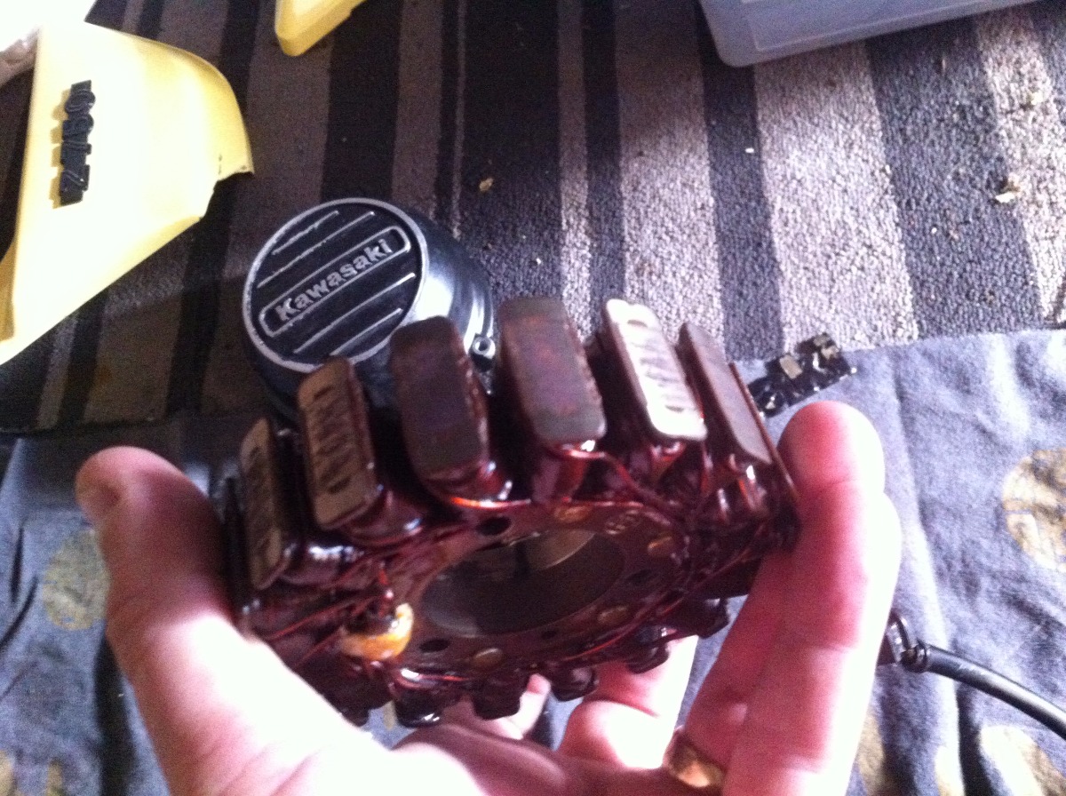 I have the original Z750 book and it says the stator should leave between 0.48 - 0.78 and mine is 0.10 - 0.15 so I have ordered a new used stator and hope that's the problem.
