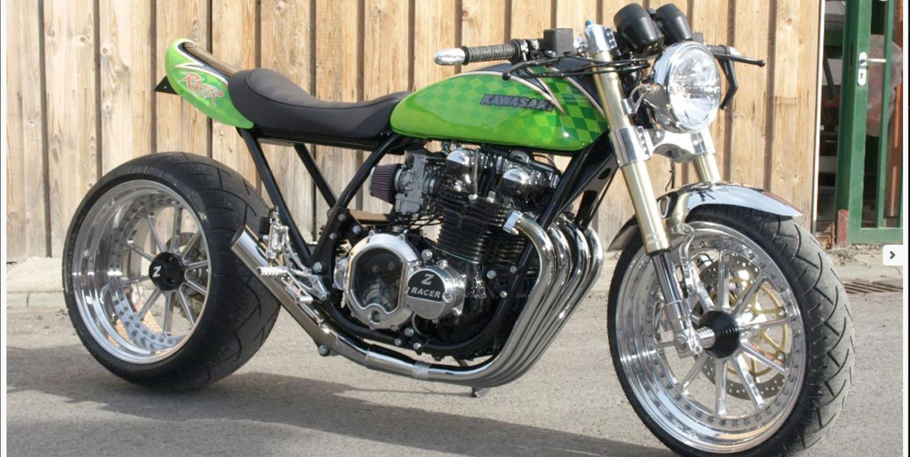 Here are some Germany Kawasaki bikes with your wheel/tire ( up to max. 12.5“wheel ) and swing arm setup.
